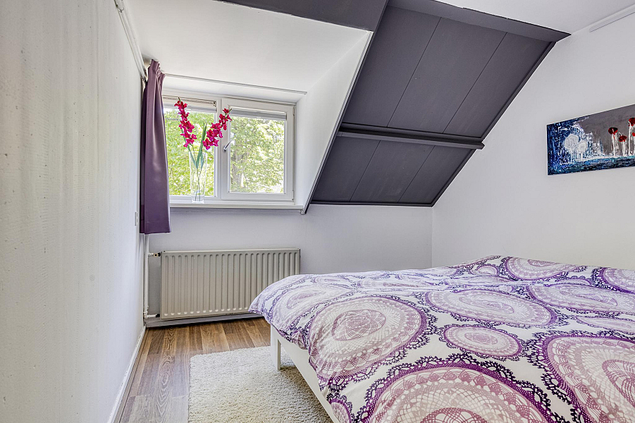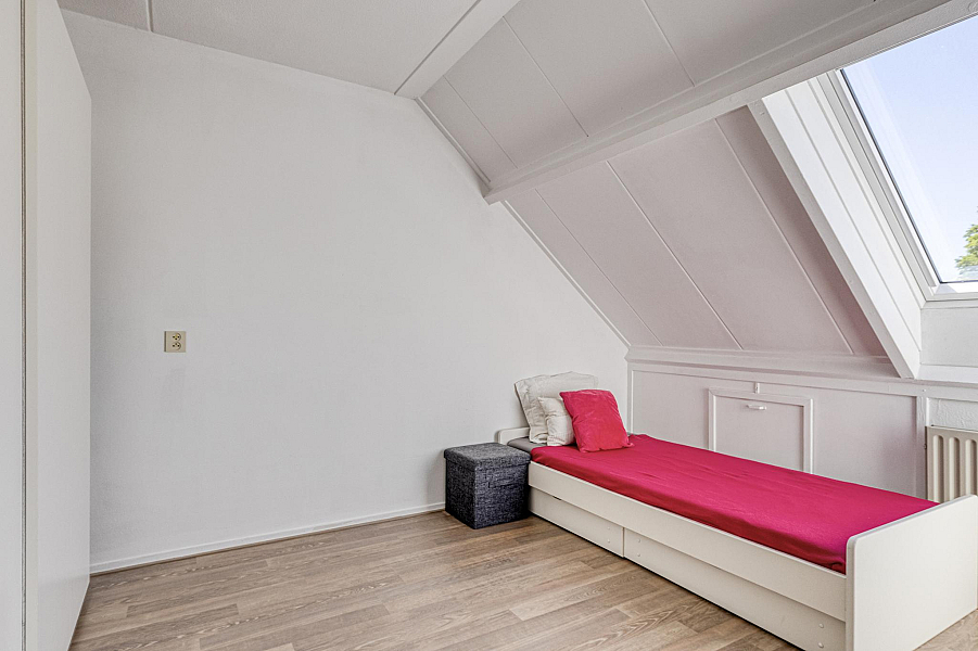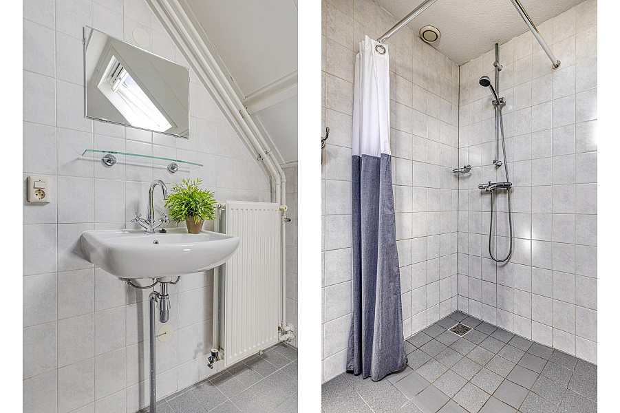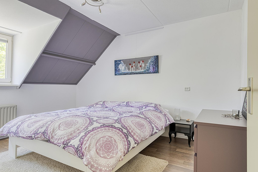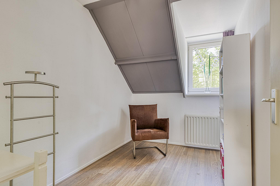 2E VERDIEPING: Overloop, 3 slaapkamers waarvan 2 slaapkamers zijn voorzien van een kunststof dakkapel, badkamer met vaste wastafel en douchehoek. Verder is er nog volop bergruimte achter de knieschotten.