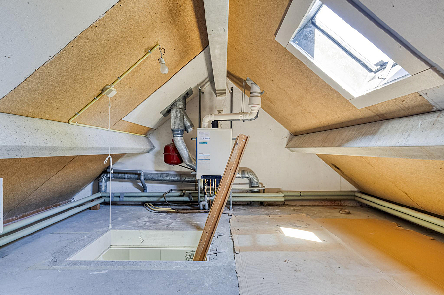 VLIERING: Middels een steektrap is de bergzolder bereikbaar, met volop plek voor al je spullen en opstelplaats voor de cv-ketel (Intergas, 2014).