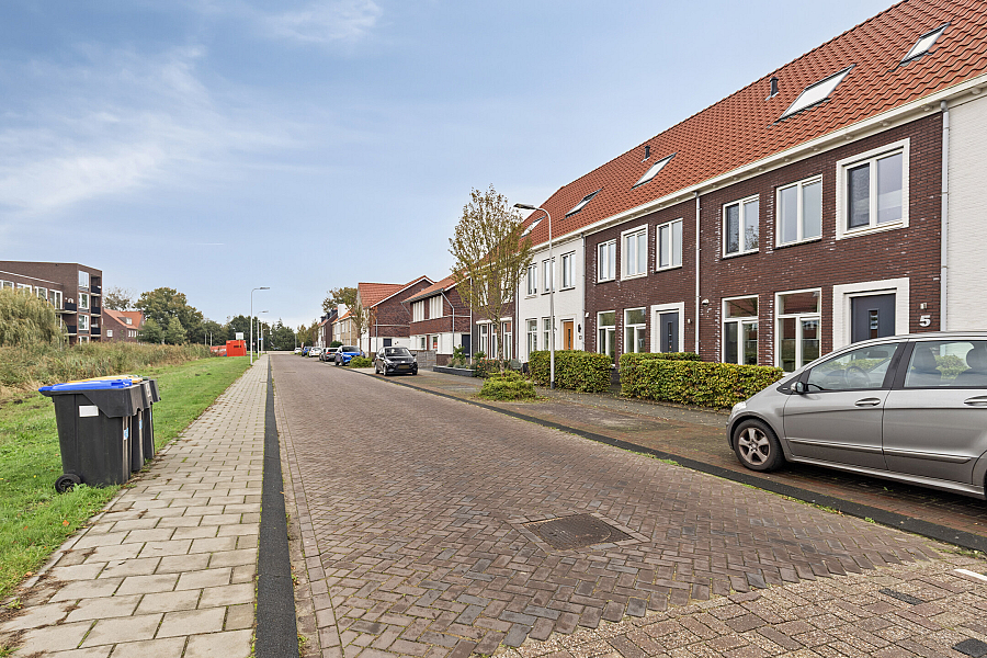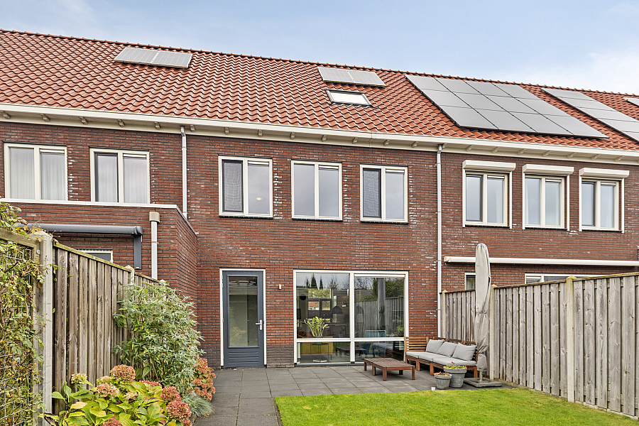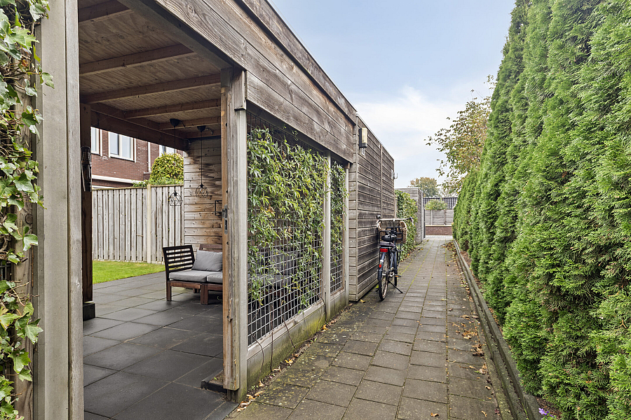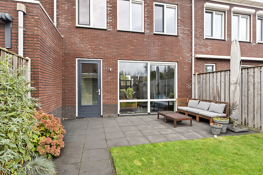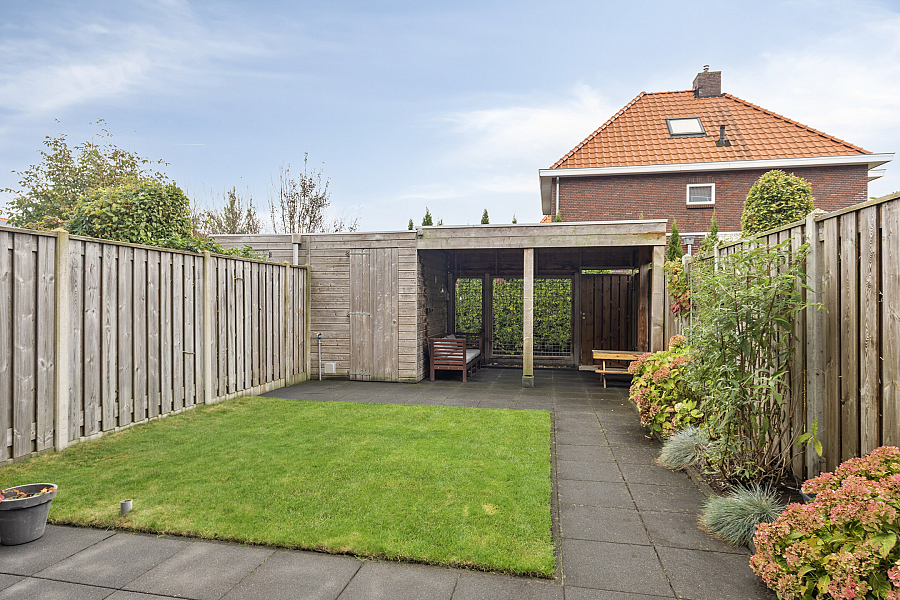 De verzorgde tuin ligt gunstig op het zuiden en beschikt over een buitenkraan, berging (v.v. elektra) en overkapping, waardoor je hier het hele jaar door kunt genieten. Aan de voorzijde is er voldoende parkeergelegenheid in de straat.