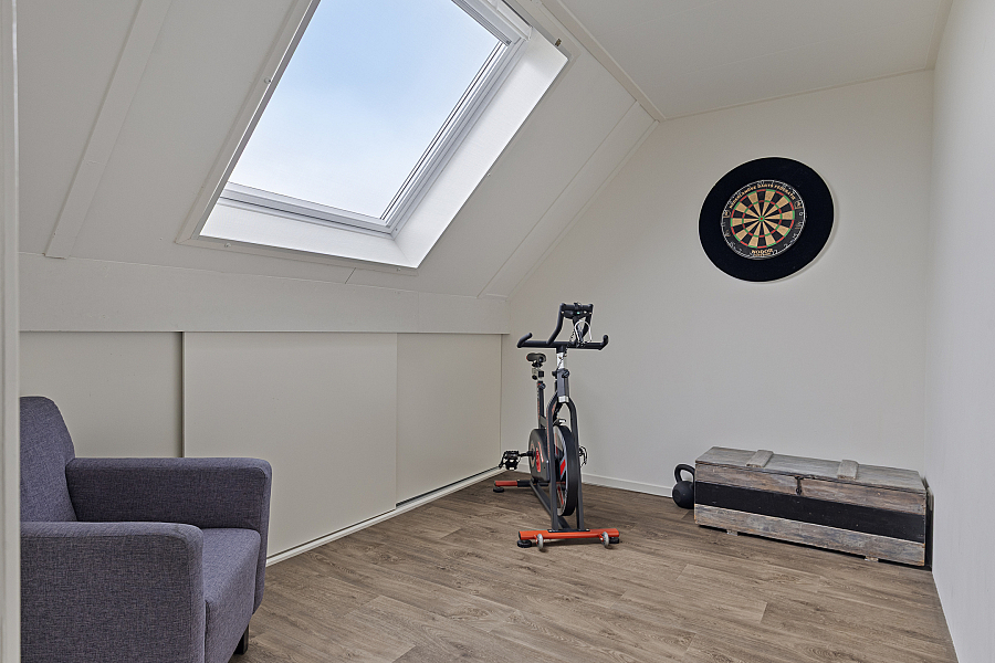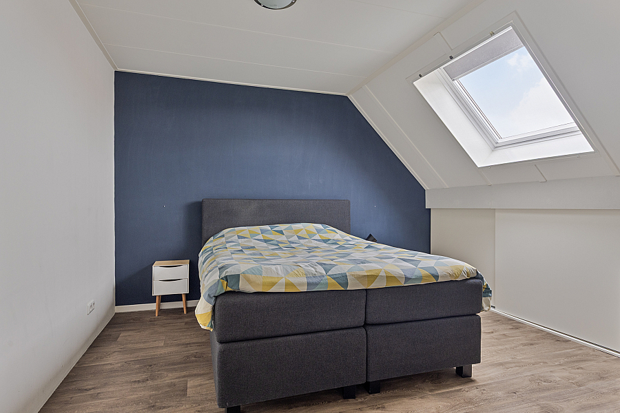 De zolderverdieping biedt nog eens twee ruime slaapkamers, beide met grote dakramen die veel licht binnenlaten. Op de overloop vind je bovendien de aansluitingen voor de wasmachine en droger.
