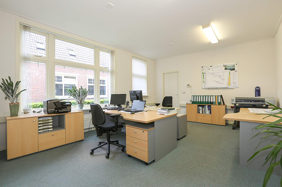 Fraaie entree, ontvangstruimte met eigen toilet en pantry, kantoorruimte, archiefruimte, vergaderruimte, cv-ruimte (eigen ketel voor bedrijfsgedeelte). De ruimte is gestoffeerd en eventueel is het meubilair in bruikleen aanwezig.