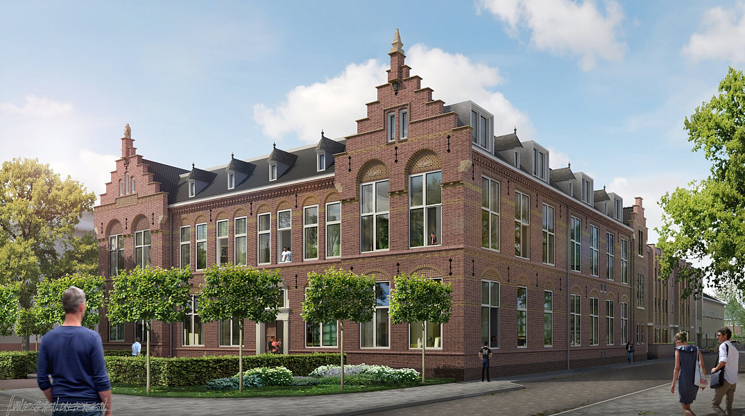 De voormalige HBS wordt getransformeerd naar 14 luxe appartementen. Het provinciale monument is een bijzonder pand met authentieke details, zoals de houten spanten en hoge ruimtes.