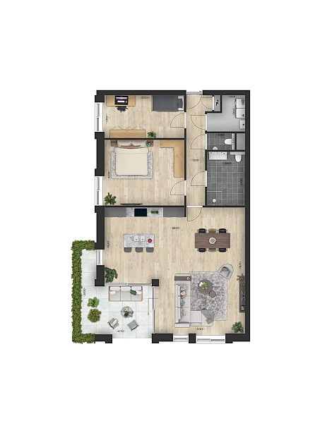 Het appartement wordt voorzien van een individueel lucht-water warmtepomp met buffervat inclusief warmwatervoorziening. Het appartement wordt standaard voorzien van vloerverwarming als hoofdverwarming. De temperatuurregeling geschiedt door middel van een kamerthermostaat in de woonkamer. De slaapkamer en badkamer kunnen na-geregeld worden middels de verwarmingsverdeelunit.