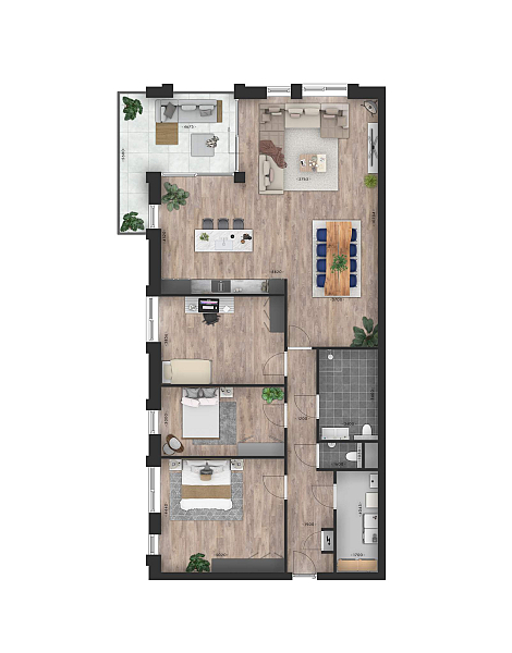 De 14 lichte en ruim opgezette appartementen worden 119 m2 tot 157 m2 groot. De driekamer- appartementen op de begane grond staan in directe verbinding met de levendige buurt. De vierkamerappartementen op de verdiepingen hebben een ruim balkon met