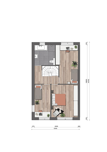 Type Zomertaling is 6,54 meter breed en 10,14 meter diep. De woonkamer aan de voorzijde is heerlijk ruim met plaats voor een grote zithoek. De tuinzijde biedt ruimte voor je toekomstige droomkeuken. Daarnaast heeft deze woning een