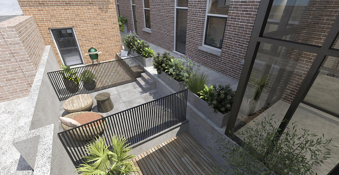 Appartement B heeft een prachtig hoog plafond, een woonkamer van ca 16m2 met toegang tot de half open keuken. Het appartement heeft daarnaast 2 slaapkamers, een badkamer, separaat toilet en apart washok. De buitenruimte is maar liefst 11 m2 en bevindt zich aan het tussenlid.