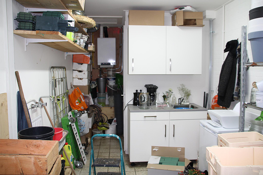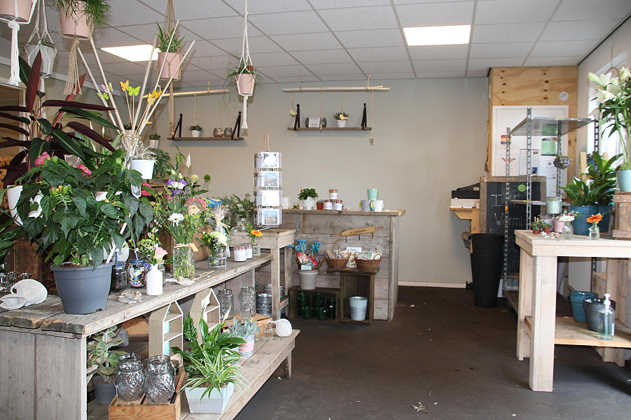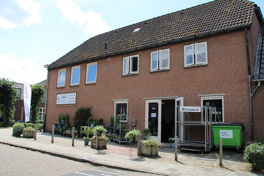 Op de begane grond bevinden zich 2 winkelruimtes, thans verhuurd als kapsalon (circa 35 m2) en bloemenwinkel (circa 80 m2).