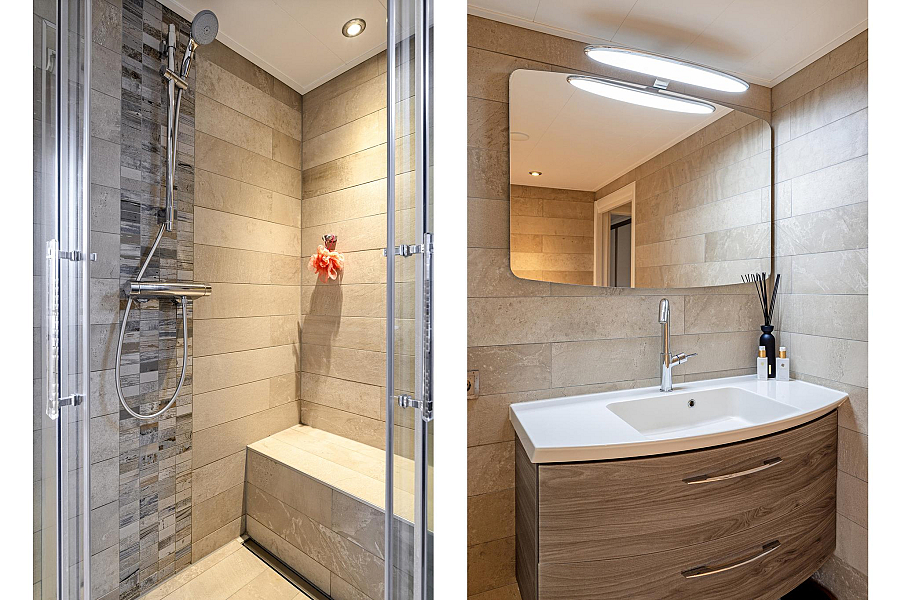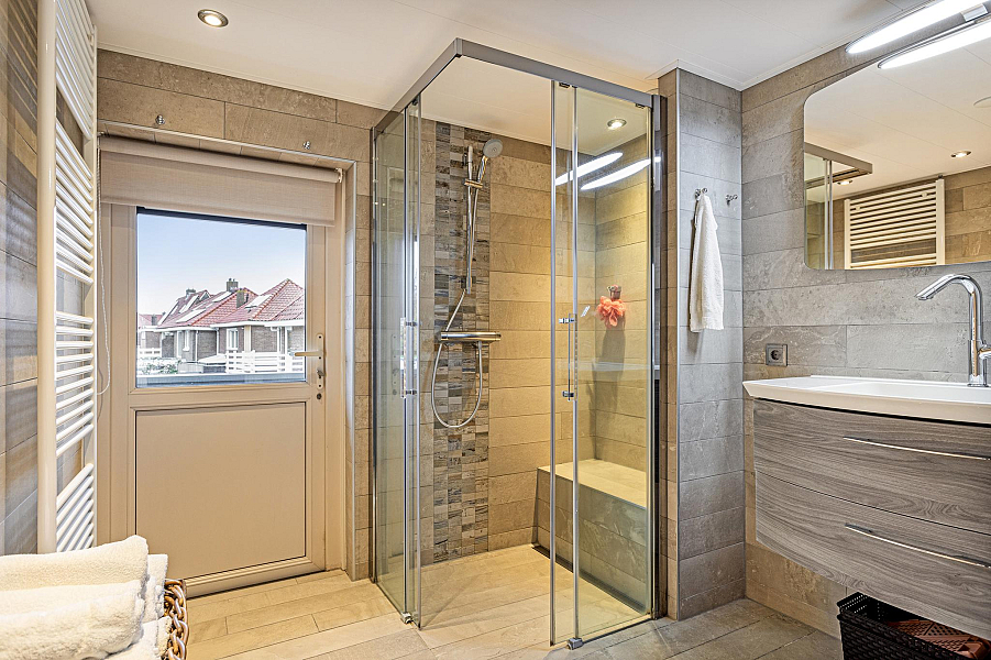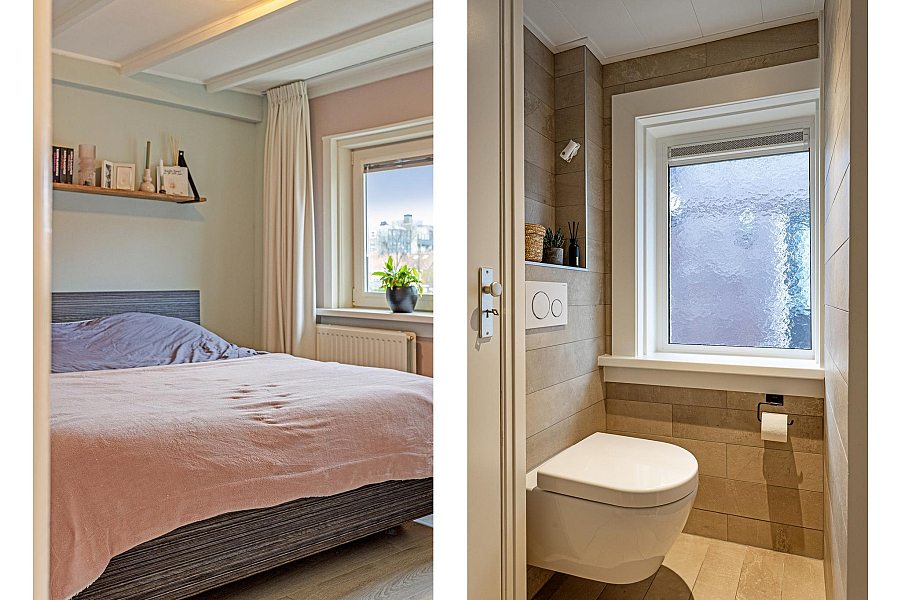 Overloop, moderne toiletruimte (2016) met cv-kast (Intergas 2015, eigendom), 3 slaapkamers van 4, 10 en 11 m2, waarbij 1 slaapkamer is voorzien van een vasten kastenwand, moderne badkamer (2016) met ruime douchecabine, breed wastafelmeubel, designradiator, inbouwspots en deur naar balkon, vaste trap naar ...