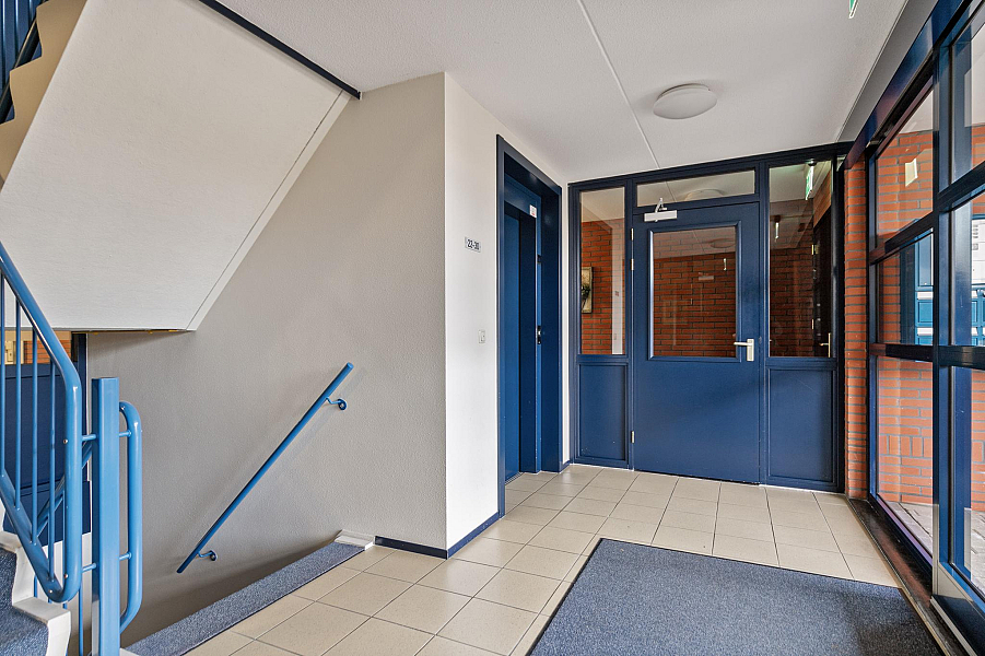 BEGANE GROND: Op de begane grond bevindt zich de centrale, gesloten entree met videofoon-installatie en postvakken. De eigen woonetage en het souterrain zijn bereikbaar middels de aanwezige lift en natuurlijk het trappenhuis.
