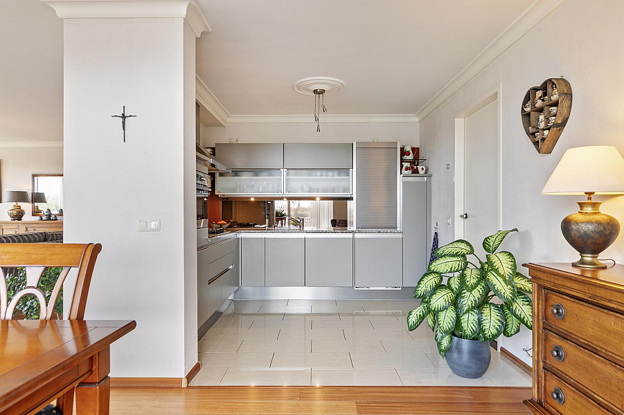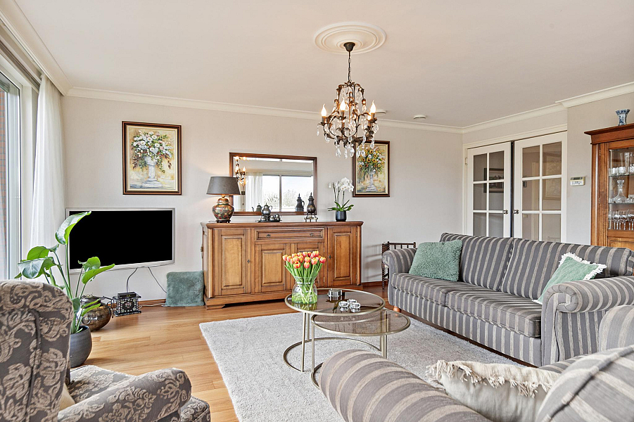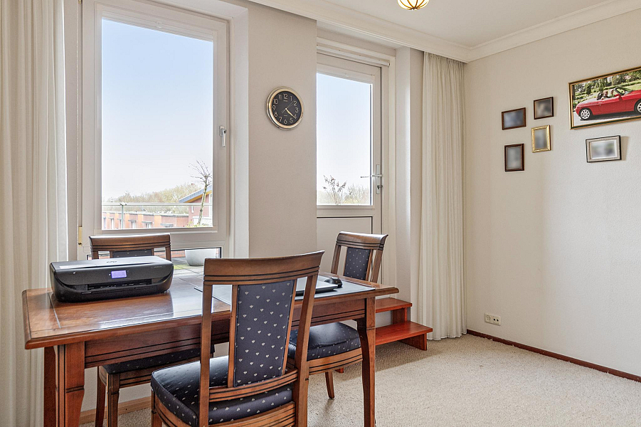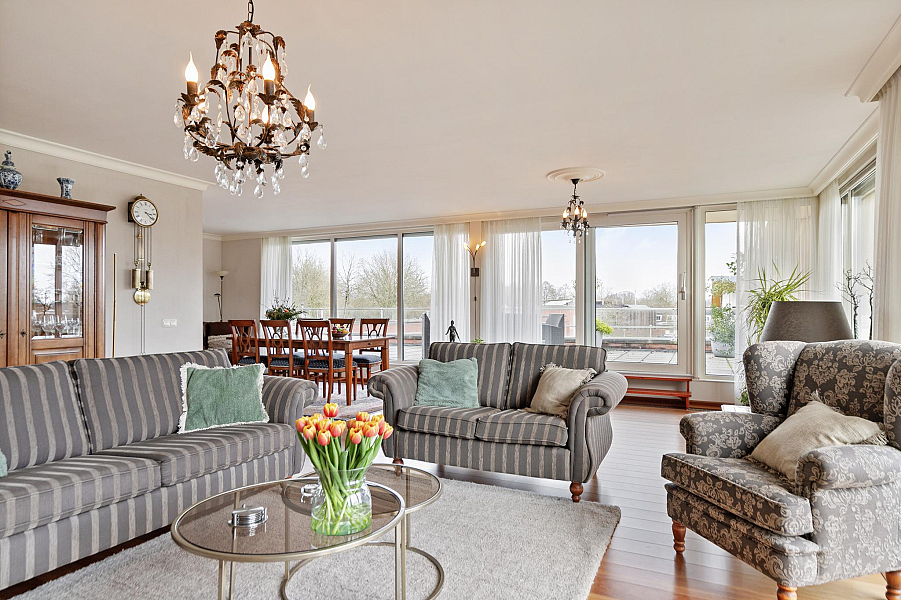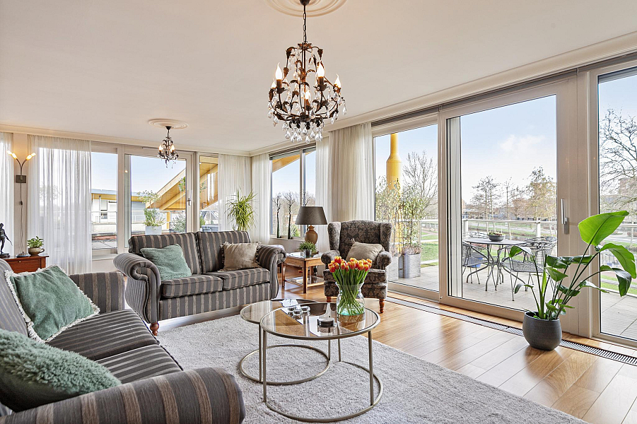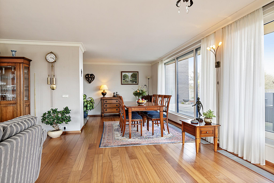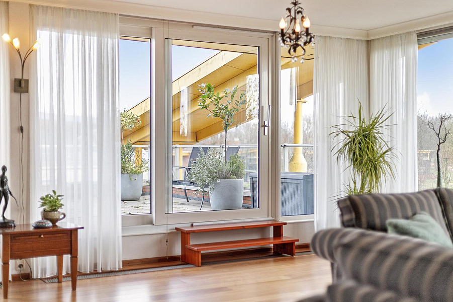 APPARTEMENT: Entree naar royale hal/gang, toiletruimte met hangend toilet en fontein, speelse living van ca. 47 m2 met veel lichtinval met toegang naar het balkon aan de voorzijde, alsmede toegang naar het riante dakterras op het zuidwesten met een vrij uitzicht over het naastgelegen park. De open woonkeuken van ca. 18m2 is voorzien van inbouwapparatuur (o.a. 4-pits gaskookplaat, afzuigkap, combi-oven, vaatwasser en koelkast). Vanuit de hal is de separate provisieruimte bereikbaar, alsmede de praktische bijkeuken/berging met opstelplaats voor wasmachine, wtw en cv-ketel (Remeha, bouwjaar 2013).