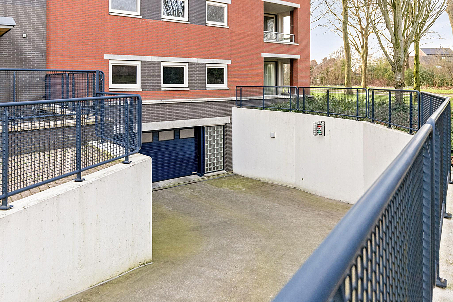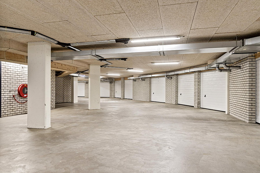 Onder het appartementencomplex, bereikbaar via de op afstand bedienbare elektrische roldeur en lift, bevindt zich de extra grote en afsluitbare garage. Behalve ruimte voor de auto, is er ook een gemeenschappelijke fietsenstalling.