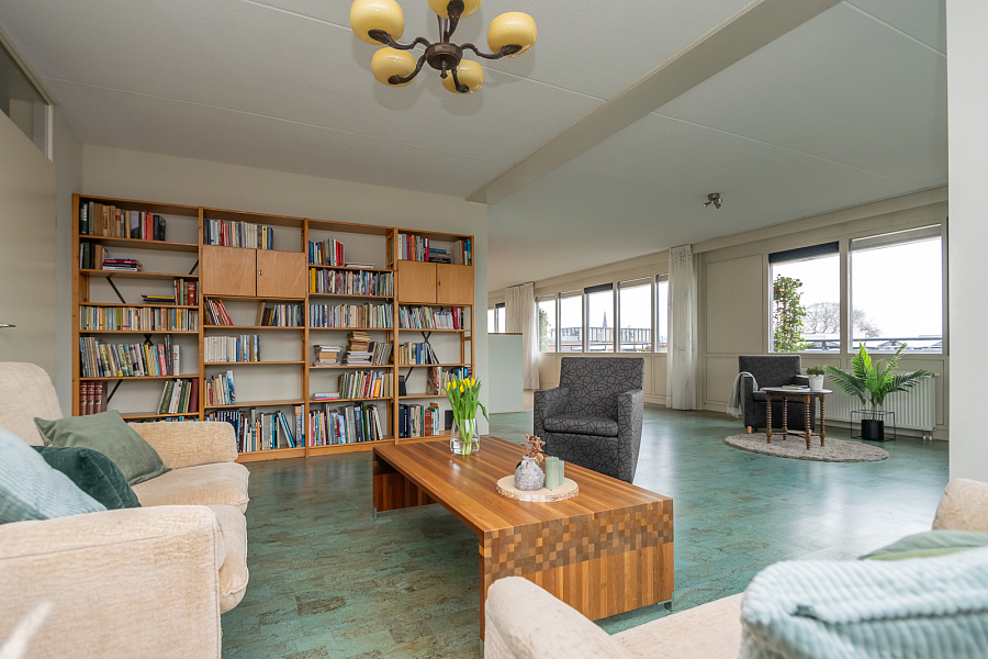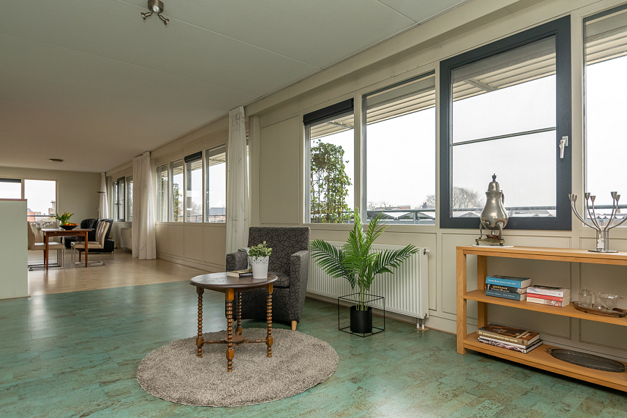Het appartement is gelegen op loopafstand van diverse voorzieningen, zoals een zeer diverse knusse winkelstraat, restaurants, schouwburg, bioscoop en NS-station. Al met al een ideale woning voor liefhebbers van ruimte, gemak, veiligheid en comfort, die geen concessies willen doen aan hun woonplezier.