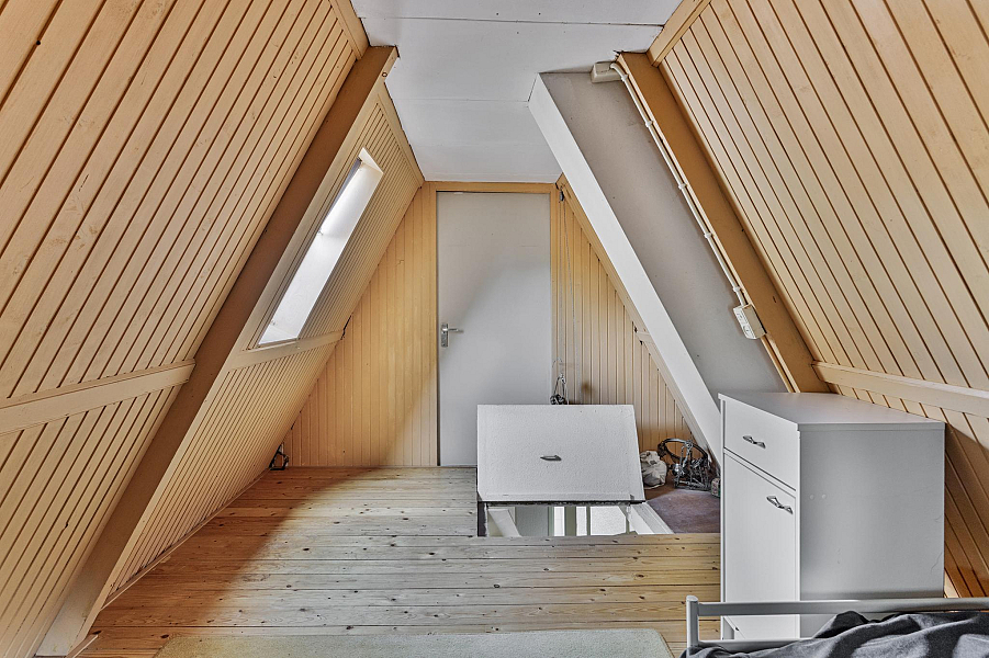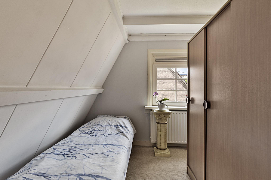 2E VERDIEPING: Ruime slaapzolder met uitstekende sta-hoogte (afgesloten slaapkamer mogelijk) met veel bergruimte en opstelplaats cv-ketel (Atag hr, bouwjaar 2009).