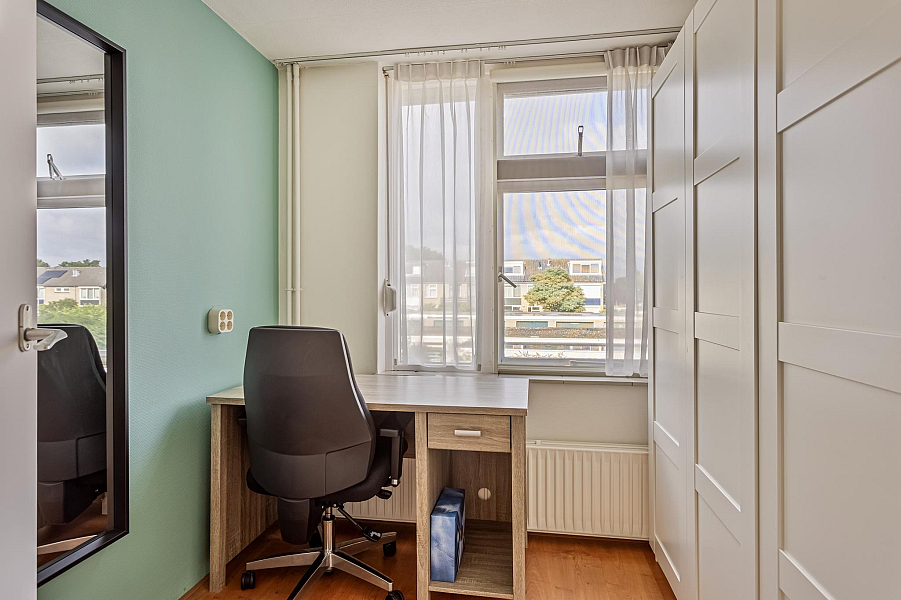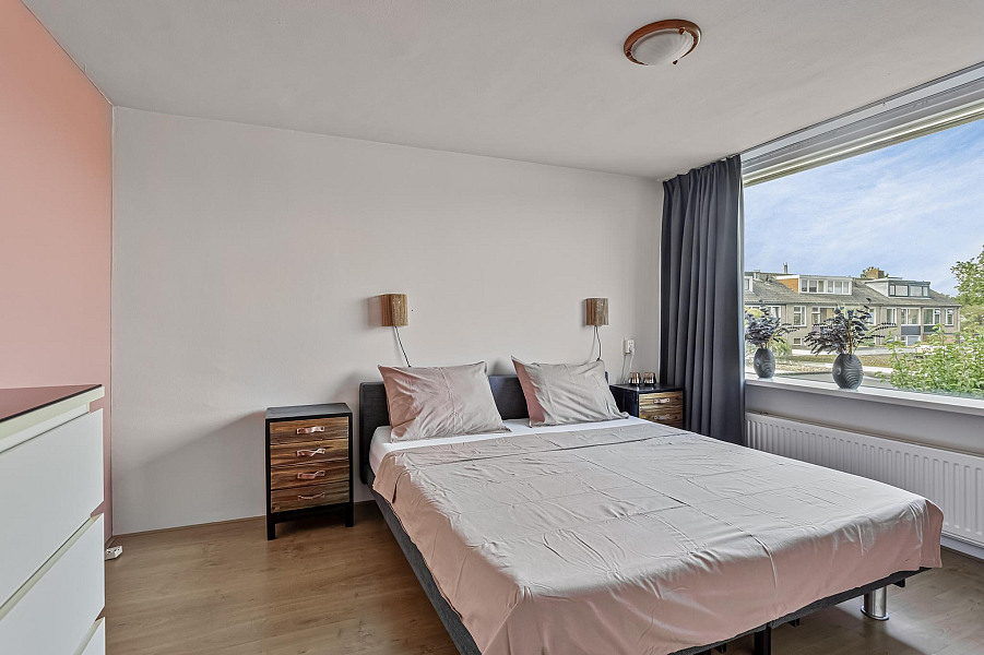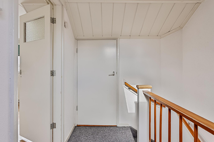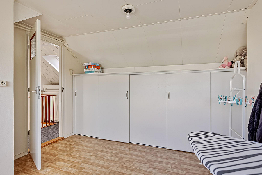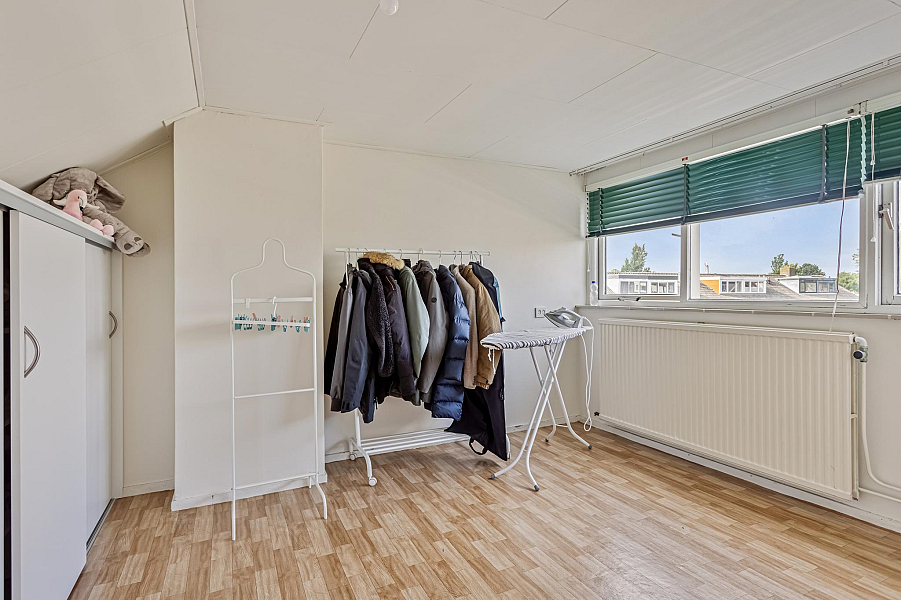 Tweede verdieping: via een vaste trap bereikbare verdieping met overloop, berging- cv/ruimte en een grote slaapkamer met dakkapel en vaste kasten.