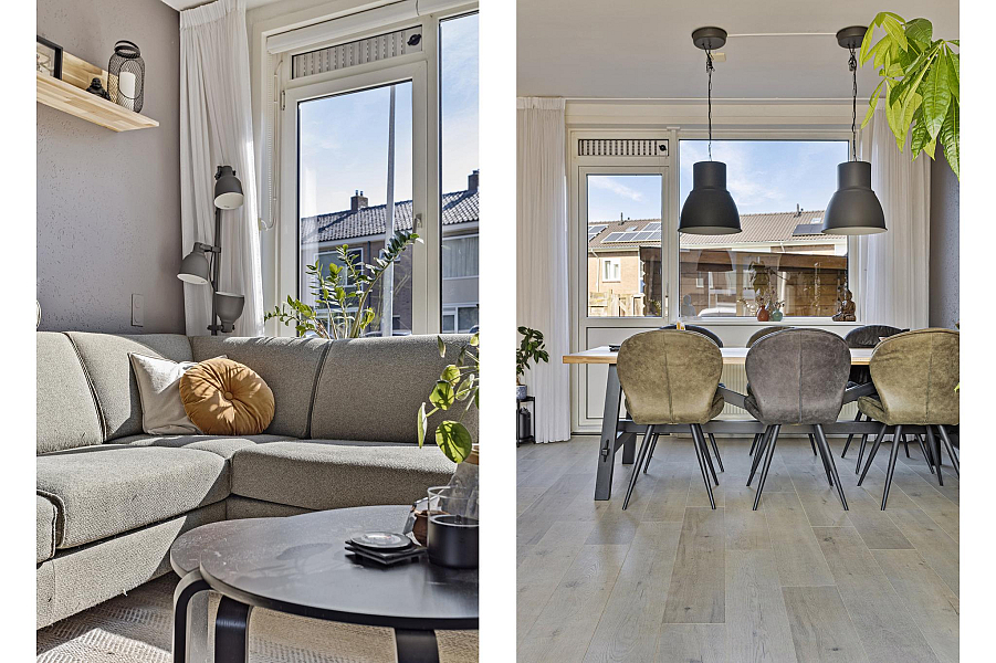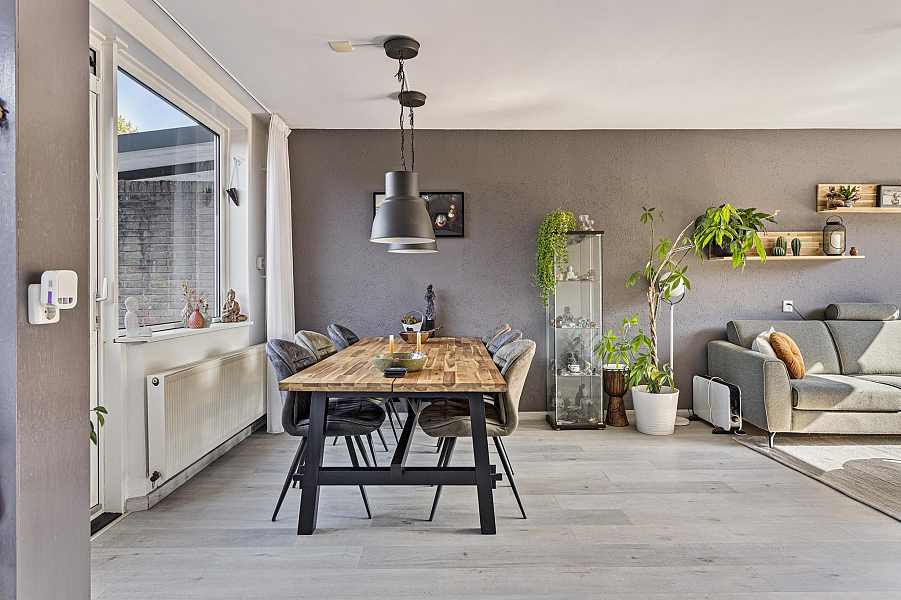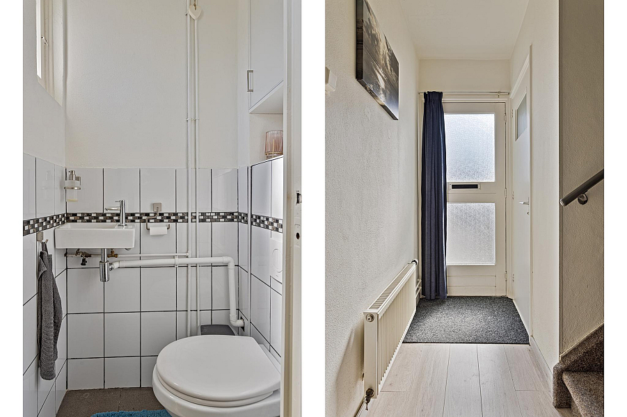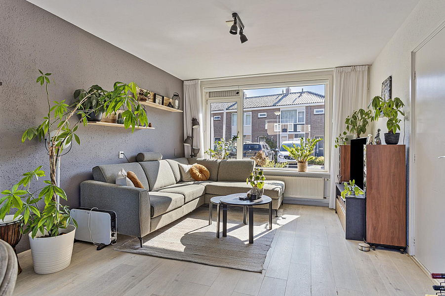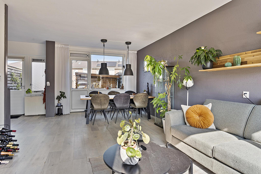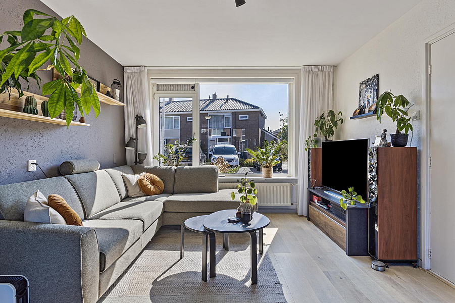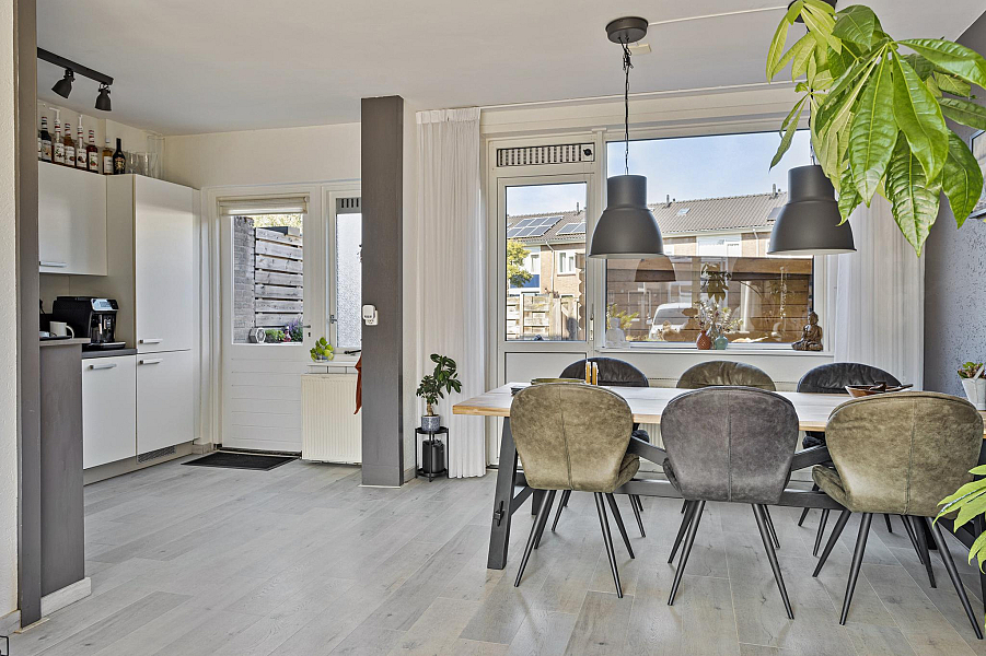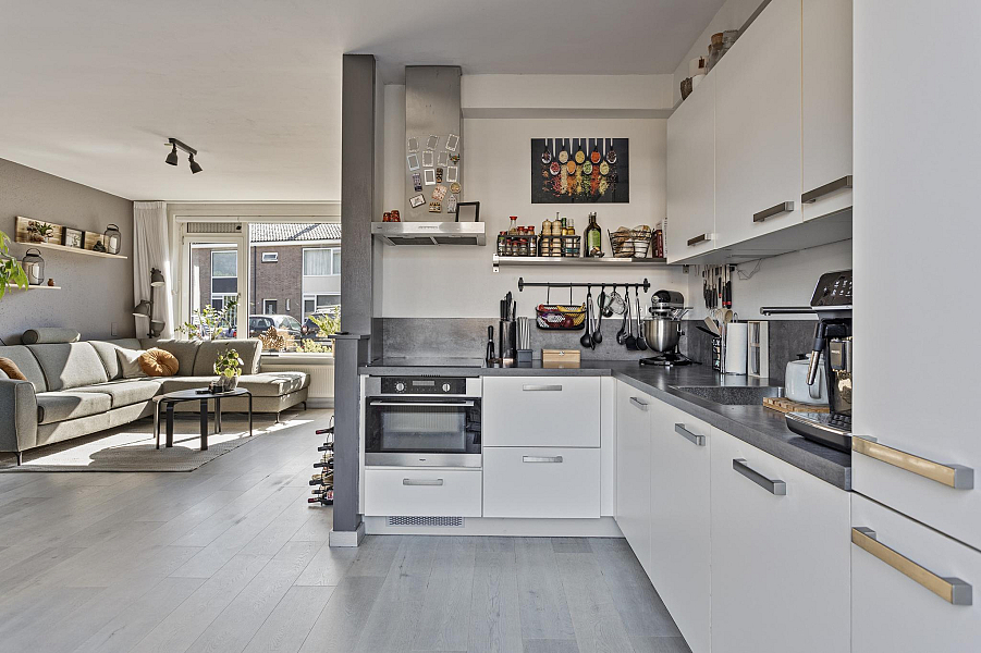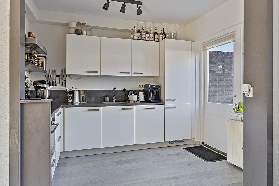 Indeling: hal met trapopgang en toilet, extra bergruimte vind je in de trapkast. Gezellige woonkamer met toegang tot de moderne open keuken welke is voorzien van een inductiekookplaat, afzuigkap, vaatwasser (2023), combioven en koel- vriescombinatie.