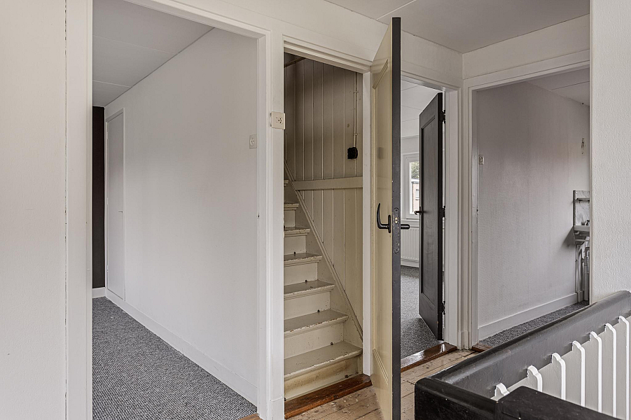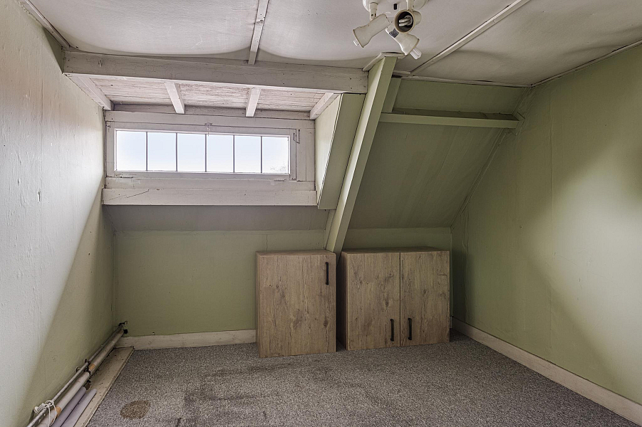 Tweede verdieping: via vaste trap te bereiken overloop/berging voorzien van de c.v. opstelling, kleine 4e slaapkamer en veel bergruimte, waar mogelijk nog een extra kamer kan worden gerealiseerd.