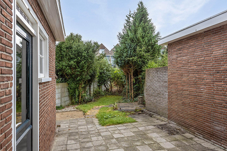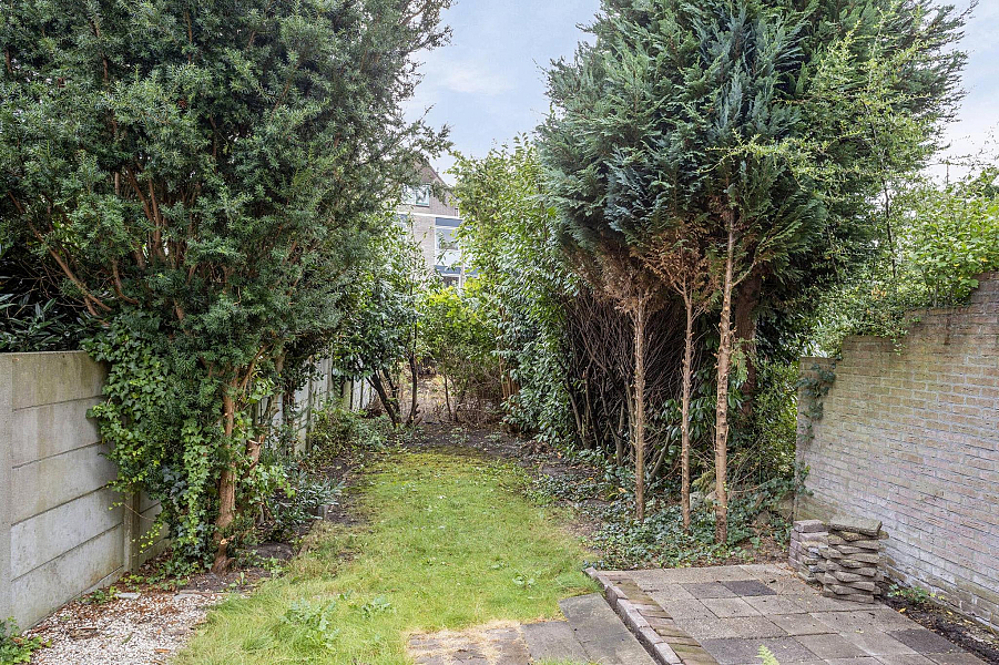 De diepe besloten en vooral zonnige achtertuin is te bereiken via de bijkeuken en is gesitueerd op het oosten.