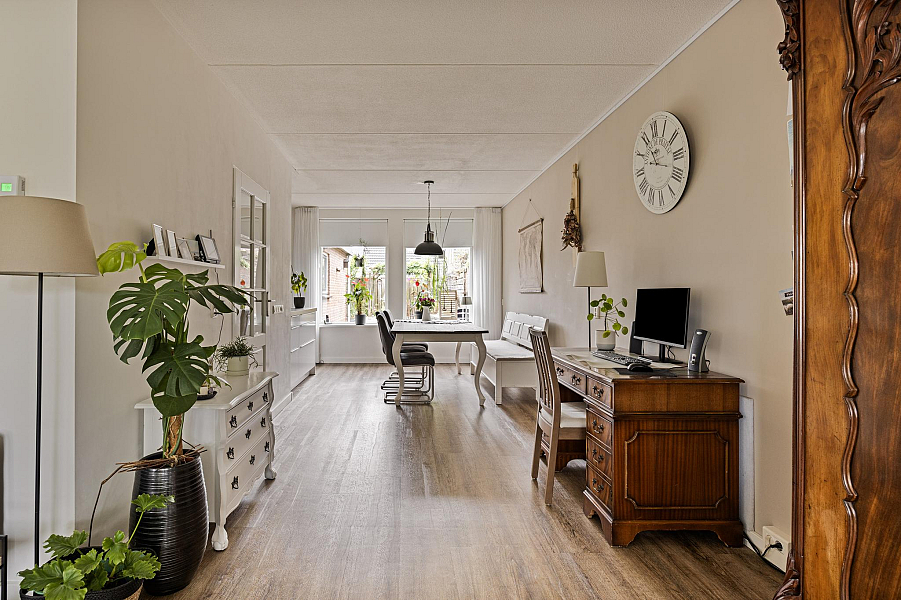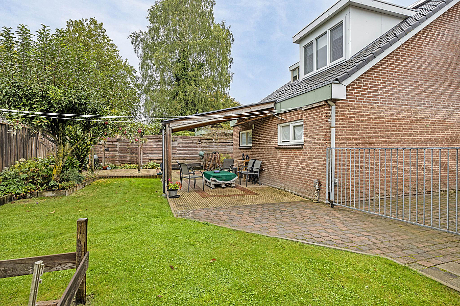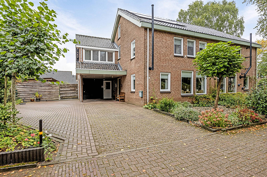 Op een prachtige locatie aan een rustig woonerf en op loopafstand van het centrum gelegen, verrassend royaal helft van dubbel woonhuis met garage, carport en geweldige tuin. De woning is gelegen op een perceel van maar liefst 468 m2 en de tuin is gesitueerd aan de westkant van de woning. Een leuke overkapping en grote berging completeren het geheel. De woning is door veel ramen lekker licht en het geheel is goed onderhouden en heeft mede door de opbouw op de garage (in 2004 gerealiseerd) 6 mooie slaapkamers.