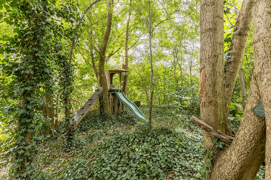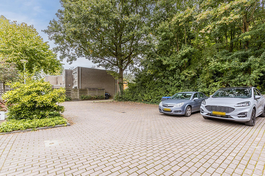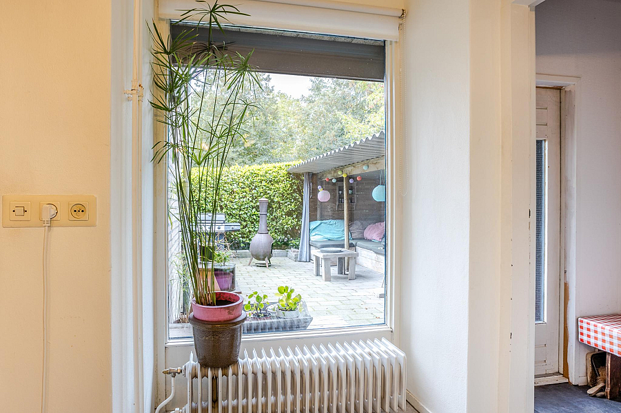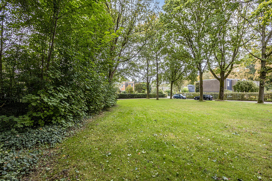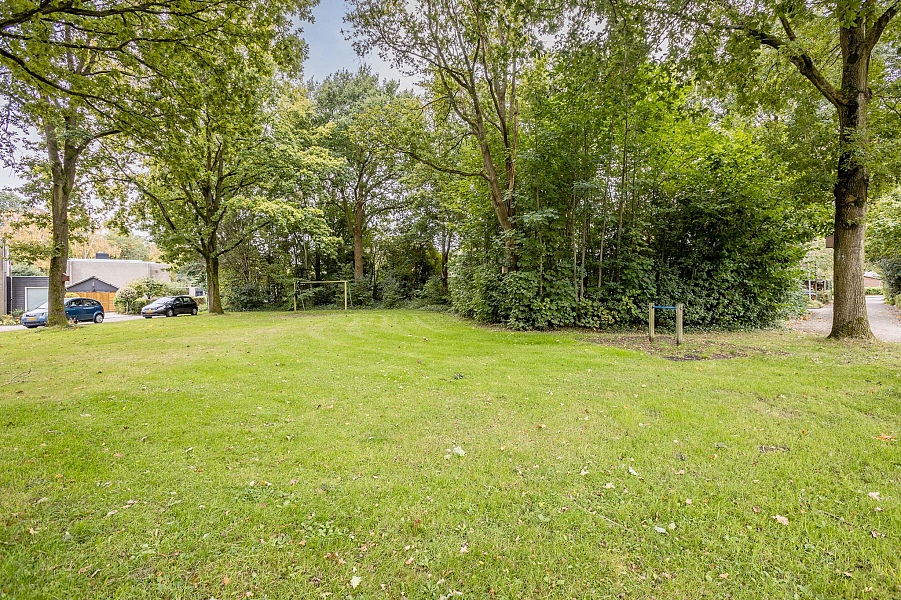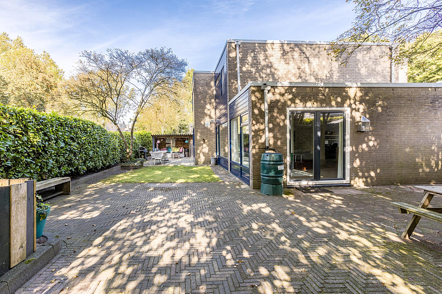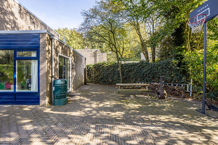 In de achtertuin een sfeervolle overkapping, verder zijn er meerdere plekken waar men een leuke zithoek kan creëren. De tuin is omsloten door een groene haag waardoor er veel privacy is.