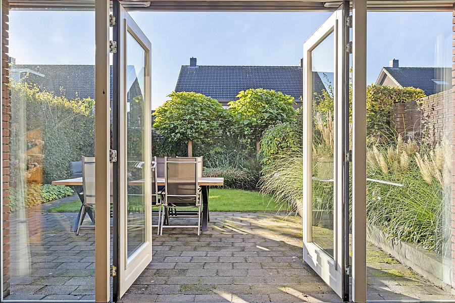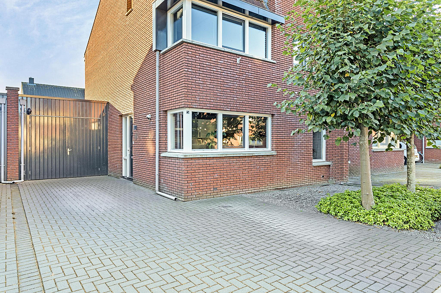 Aan de zijkant van de woning bevindt zich de garage. Deze is vanaf je eigen oprit te betreden via de dubbele deur. Tevens heb je vanuit de tuin toegang tot de garage.