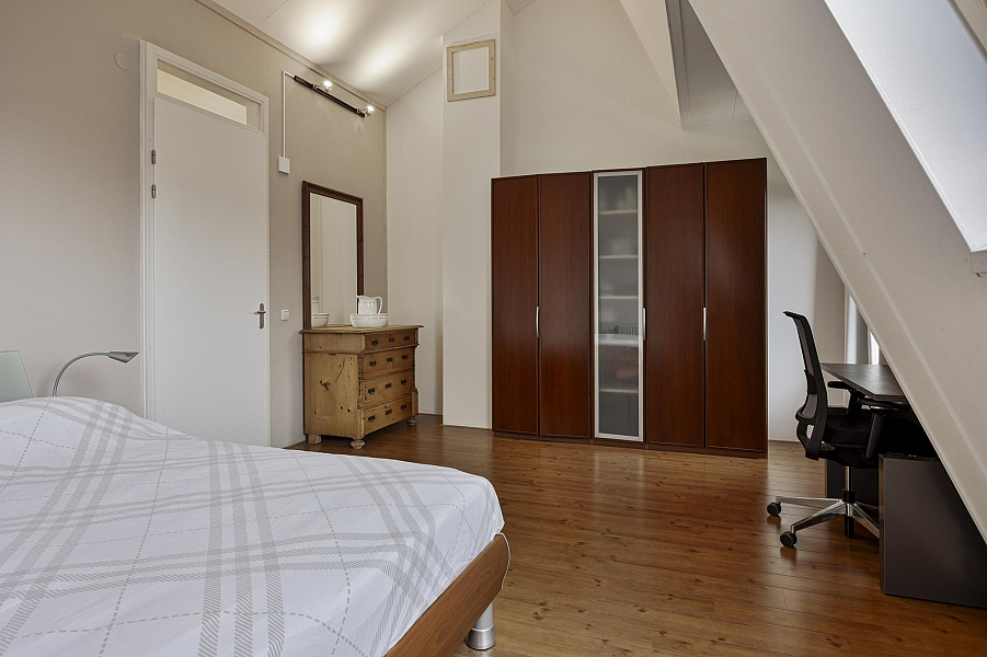 Grote slaapkamer gelegen aan de voorzijde en volop bergruimte aan de achterzijde. Doormiddel van het plaatsen van een dakkapel aan de achterzijde is hier eenvoudig een riante vijfde slaapkamer te realiseren.