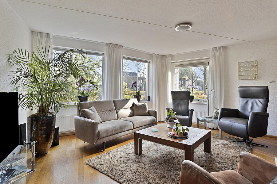 De ruime opzet van de grote waterpartijen van de Torenvalk staan garant voor veel woonplezier en weinig verkeersbewegingen. Een woning met veel ruimte en speelse vormgeving.