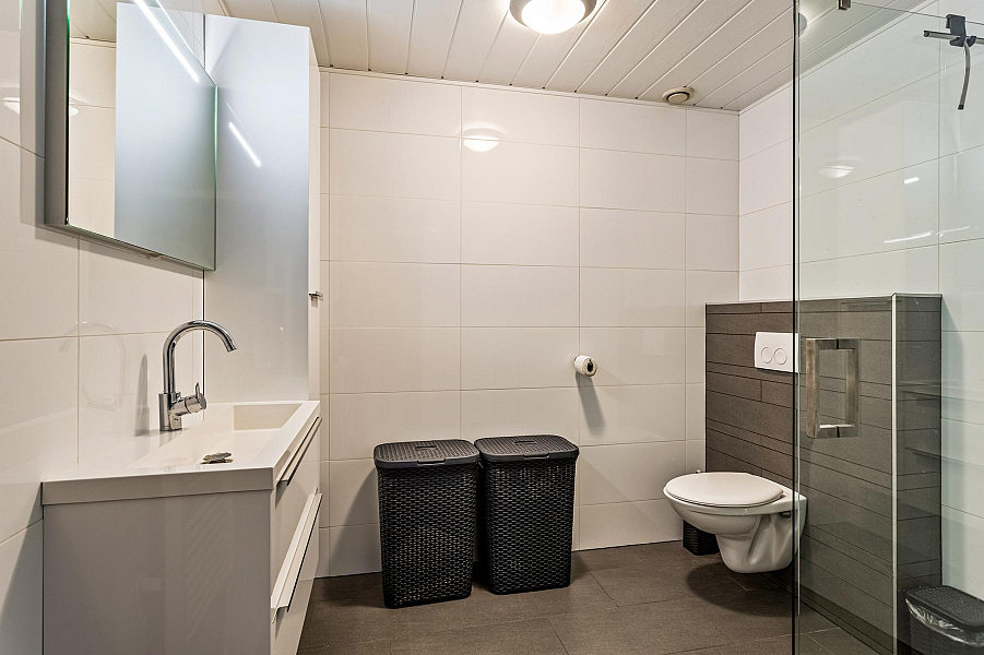 1e Verdieping: Overloop, 3 goede slaapkamers van 8m2, 10m2, en een ouderslaapkamer van maar liefst 22m2, moderne badkamer met douchecabine, 2e toilet en wastafelmeubel, vaste trap naar ...
