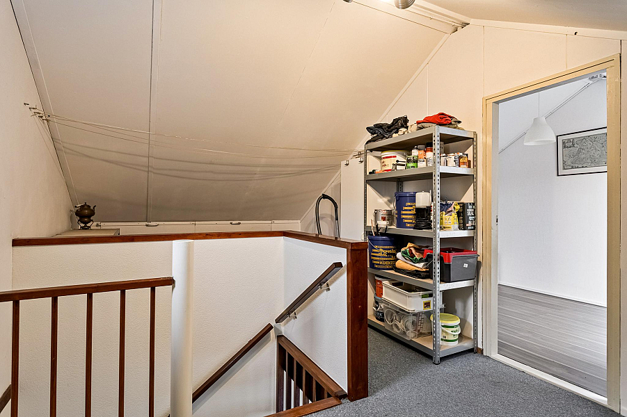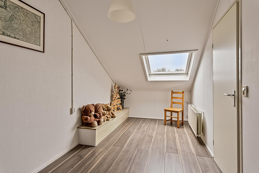 2e Verdieping: hier is nog een ruime slaapkamer met groot dakraam, en een zeer ruime voorzolder met opstelplaats voor de cv-ketel (Atag hr, )bouwjaar 2020. Verder is er nog volop bergruimte achter de knieschotten.