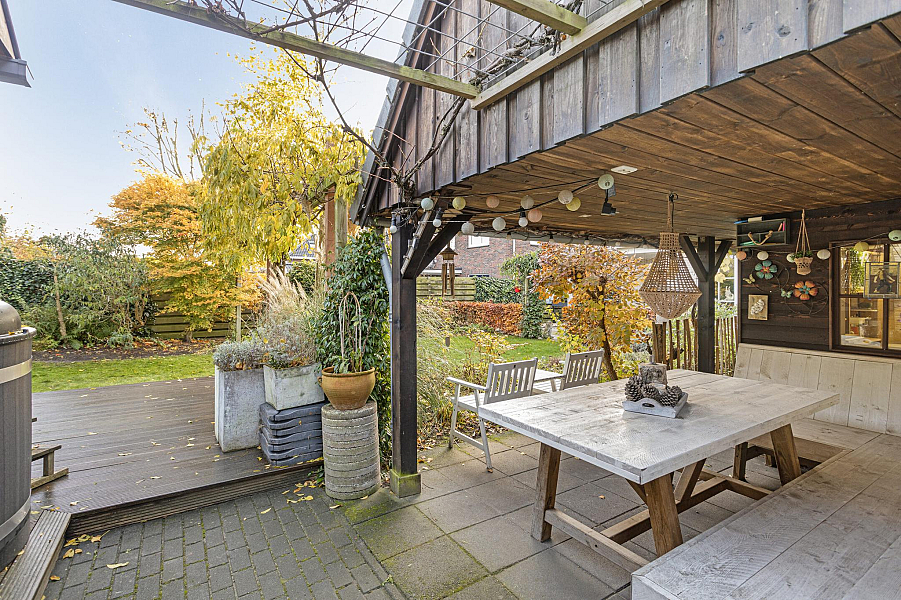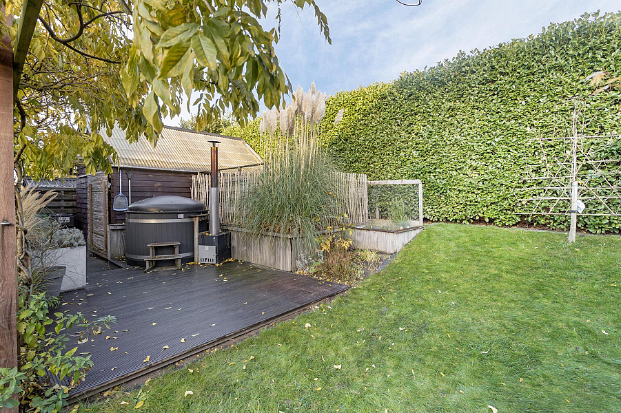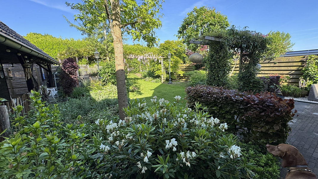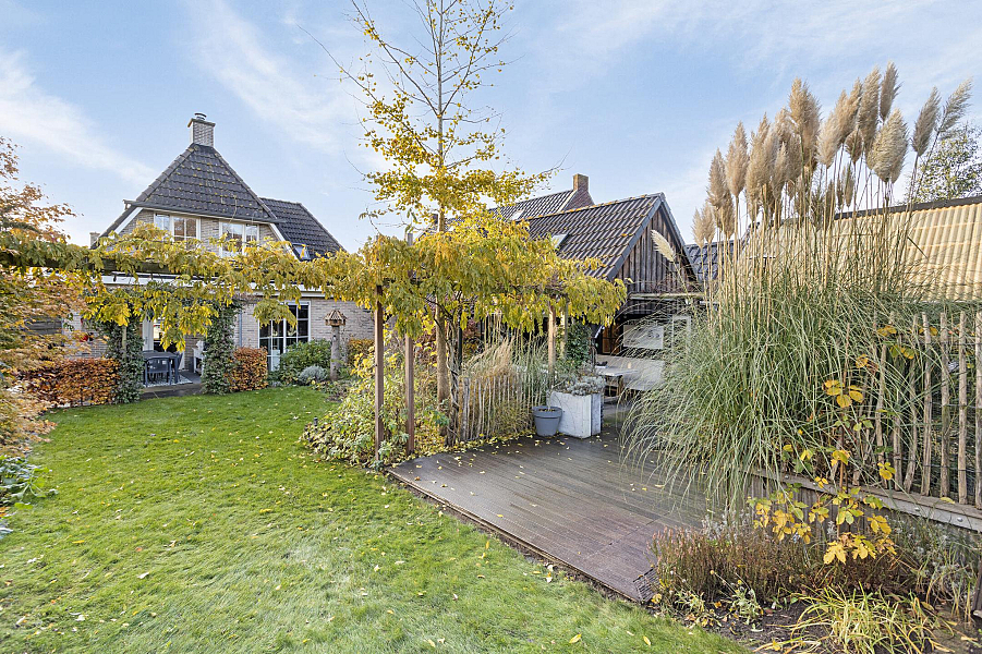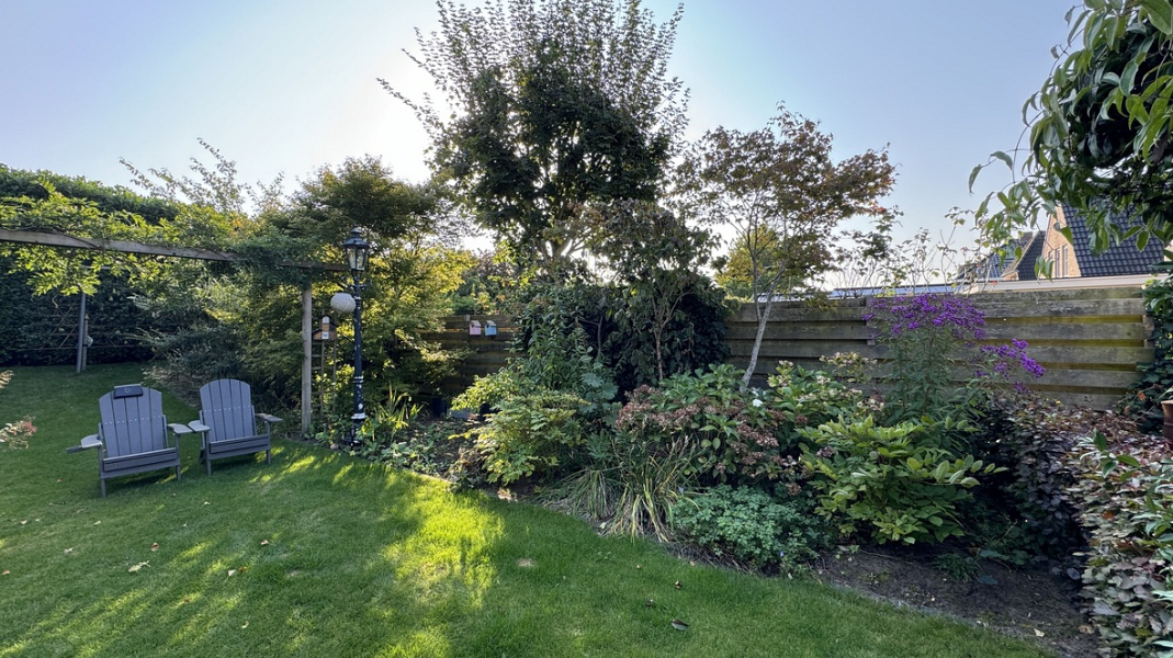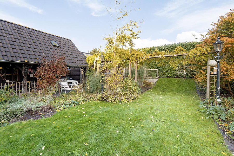 De diepe, fraai aangelegde tuin is de kers op de taart! Met een verscheidenheid aan planten en (fruit)bomen, is deze een lust voor het oog. De ruime schuur met vliering biedt voldoende ruimte voor hobby en opslag. De schuur is voorzien van een krachtstroom-aansluiting.