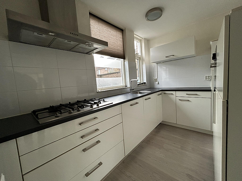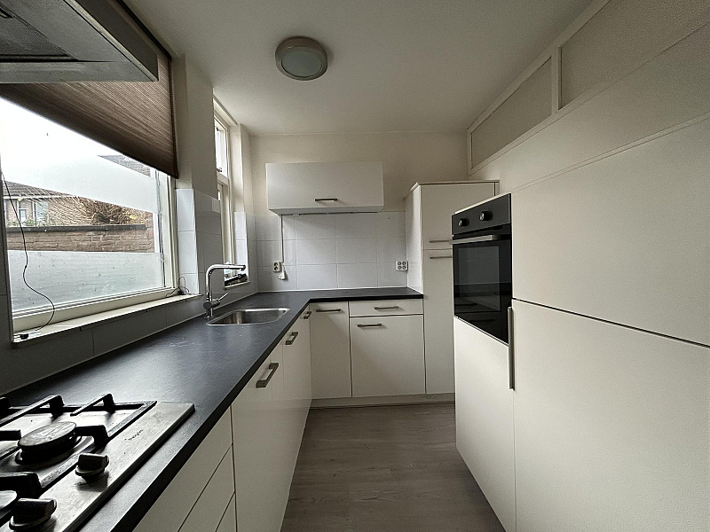 BEGANE GROND: Entree met toilet en trapopgang, moderne half open keuken met inbouwapparatuur (o.a. gaskookplaat, afzuigkap, combi-oven, dubbele koelkast en vaatwasser), tuingerichte woonkamer met laminaatvloer, veel lichtinval door de grote raampartijen en deur naar de mooi aangelegde, diepe tuin op het zuidwesten welke grenst aan een groenvoorziening.