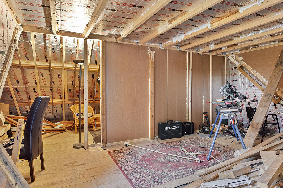 Grote open ruimte met 2 slaapkamers, waar eenvoudig meerdere slaapkamers zijn te realiseren.