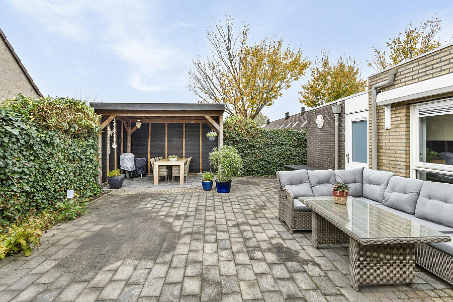 De perceelgrootte bedraagt 260m2 eigen grond, de achtertuin is gelegen op het zuiden en is ook middels een achterom langs de garage te bereiken.