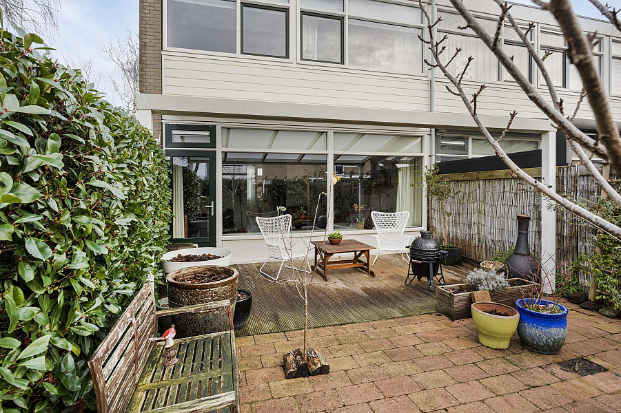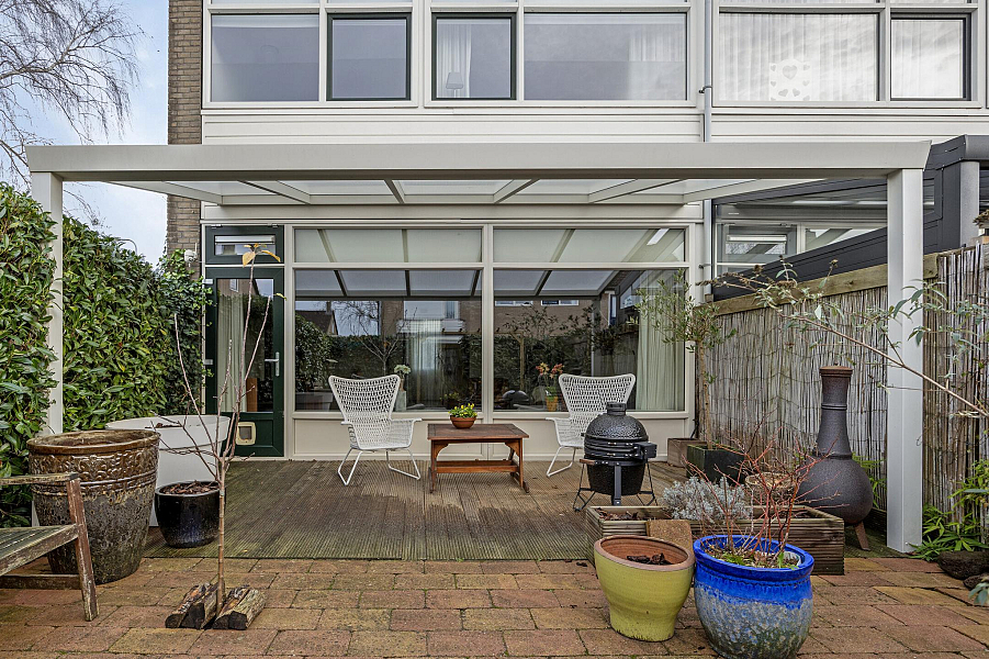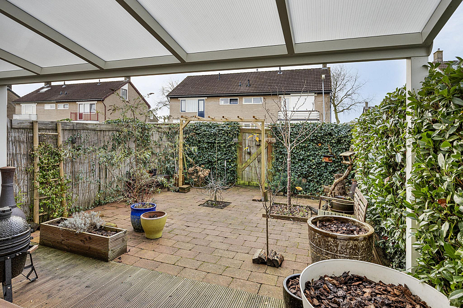 De zonnige tuin op het zuiden is de perfecte plek om te ontspannen. Met de aluminium overkapping geniet je hier van het buitenleven, ongeacht het weer. Of je nu houdt van barbecueën, tuinieren of gewoon lekker tot rust komen, deze tuin biedt het allemaal.