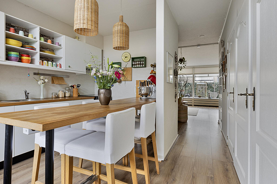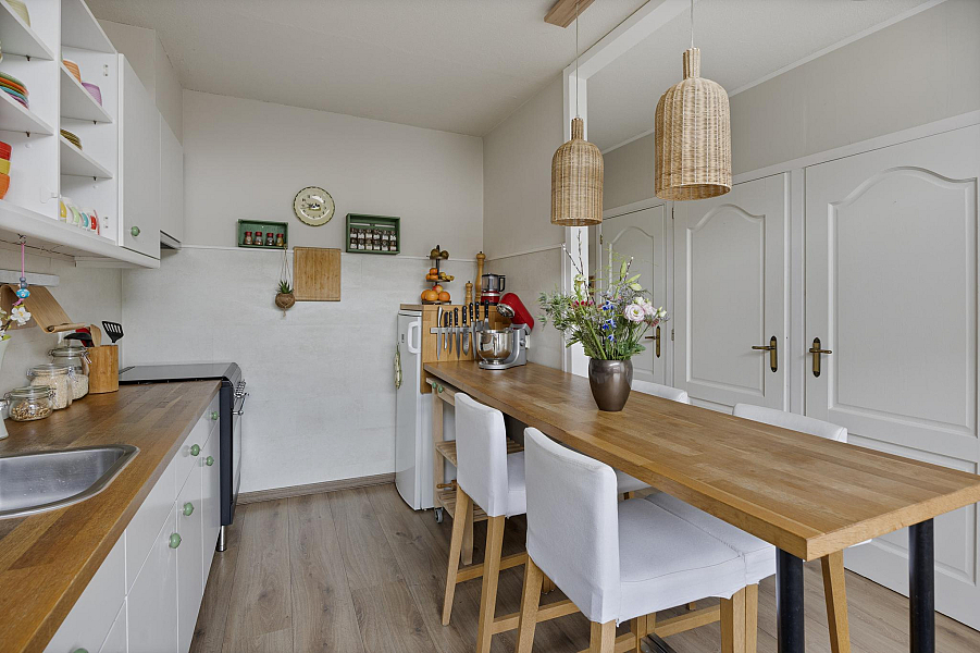 De ruime, tuingerichte woonkamer beschikt over veel natuurlijk lichtinval door de grote raampartij en is voorzien van een sfeervolle pelletkachel. Met drie royale slaapkamers biedt deze woning genoeg plek voor het hele gezin. De badkamer is netjes afgewerkt en voorzien van inloopdouche, toilet en wastafel. De keuken is praktisch en smaakvol ingericht. De grootste slaapkamer is gelegen aan de voorzijde van de woning. Deze is doormiddel van het plaatsen van een wandje weer eenvoudig terug te brengen naar twee aparte slaapkamers, waardoor je beschikt over vier slaapkamers.