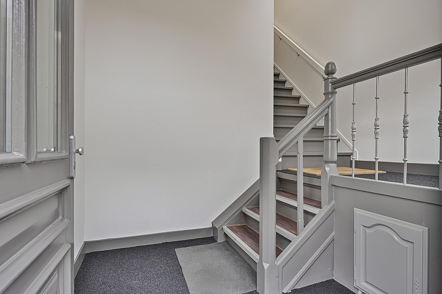 BEGANE GROND: Centrale, afgesloten entree met brievenbussen en trapopgang naar de woonetages. Ook de berging bevindt zich op de begane grond.