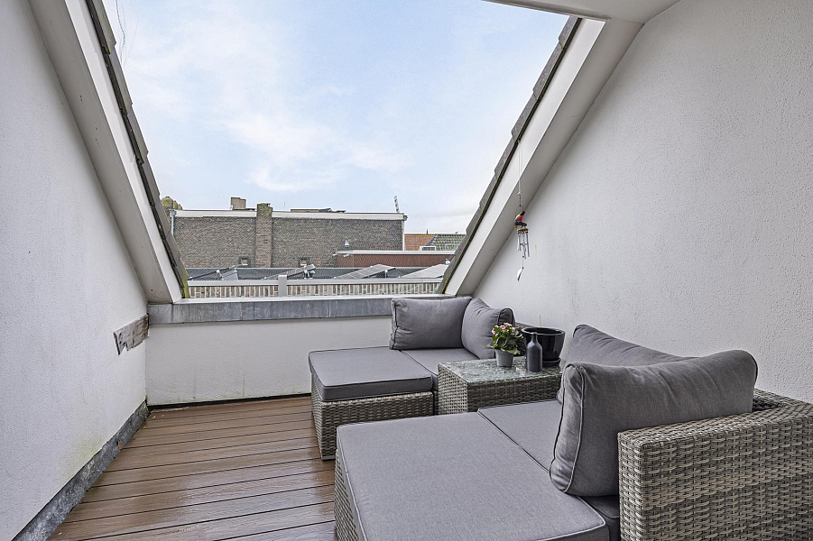 Op de tweede verdieping bevindt zich dit heerlijke APPARTEMENT van 90m2 met DAKTERRAS, eigen BERGING op de begane grond en een gezamenlijke fietsenberging.
