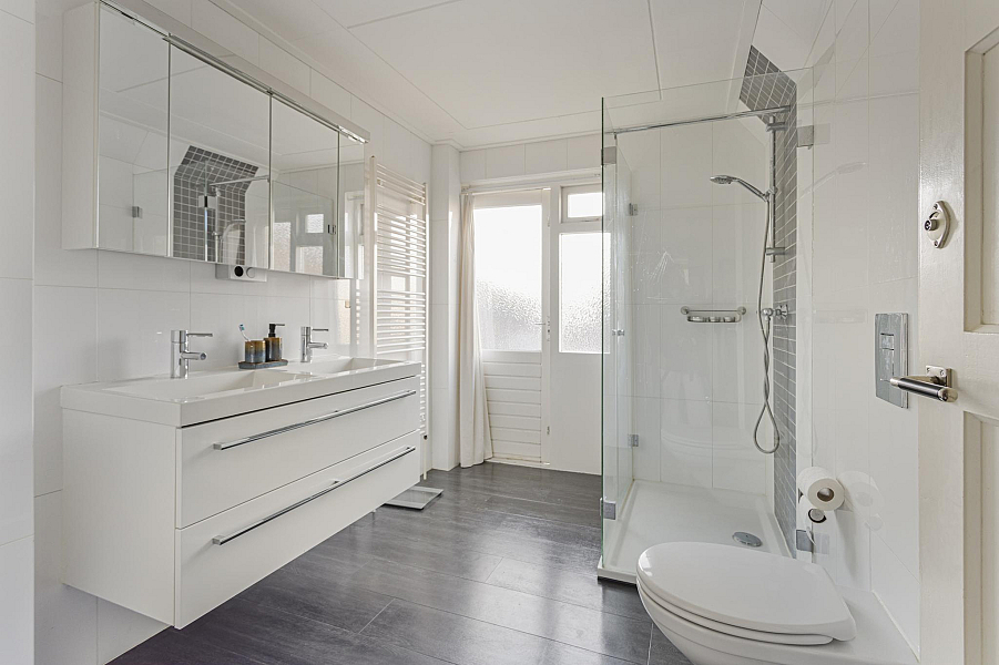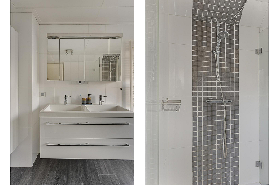 Verdieping: Op de verdieping bevinden zich de overloop, drie prima slaapkamers en een lichte badkamer (2011) met douche, wastafelmeubel, toilet en toegang tot het balkon. Tevens is de badkamer voorzien van vloerverwarming.