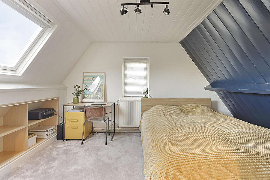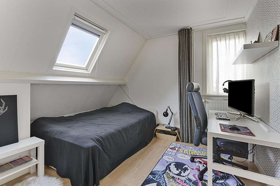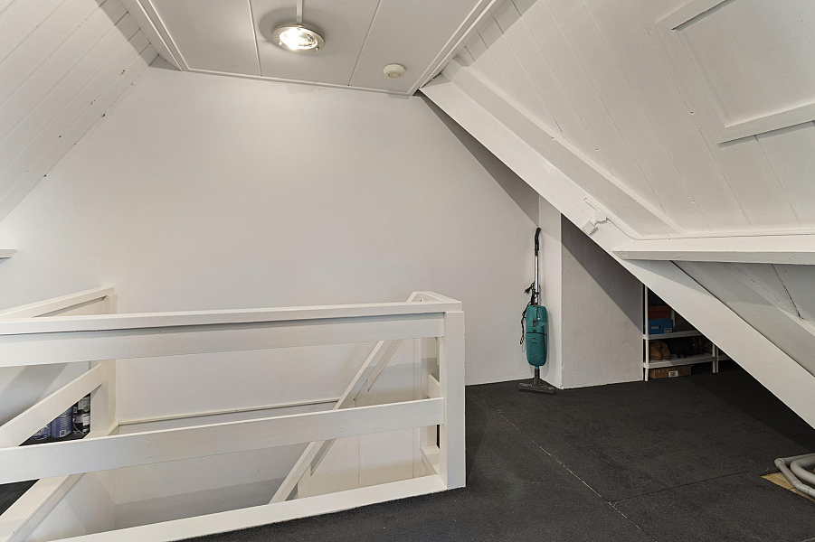 Zolder: De tweede verdieping is te bereiken middels de vaste trap naar de gezellige zolderkamer. Een grote berging biedt veel opbergruimte. Tevens is hier de cv-ketel (2017) geïnstalleerd.