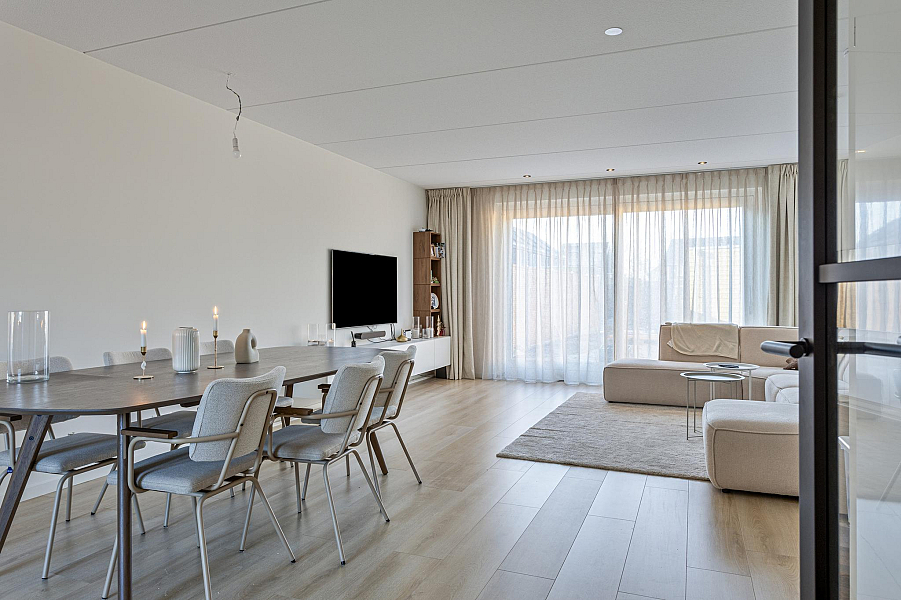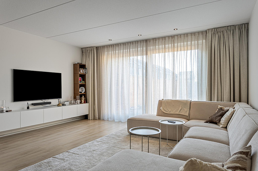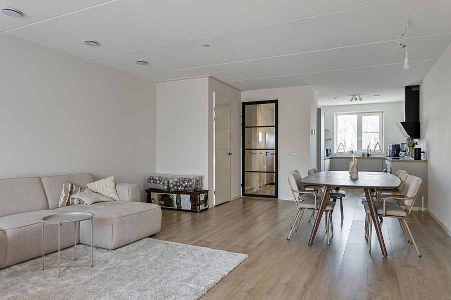 • Ruime woonkamer: De uitgebouwde woonkamer is licht en ruim, met een schuifpui die toegang biedt tot de achtertuin, perfect voor zonnige dagen en gezellige avonden.