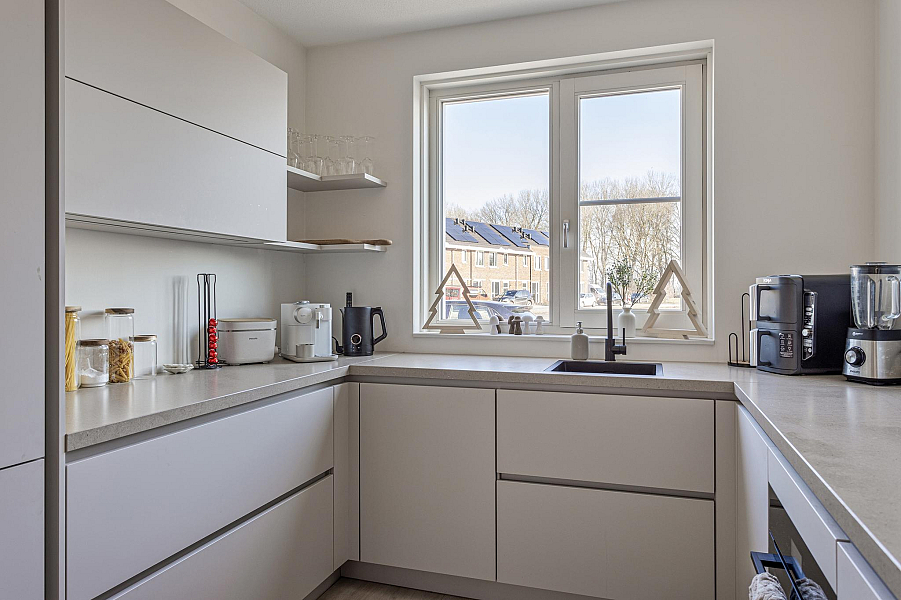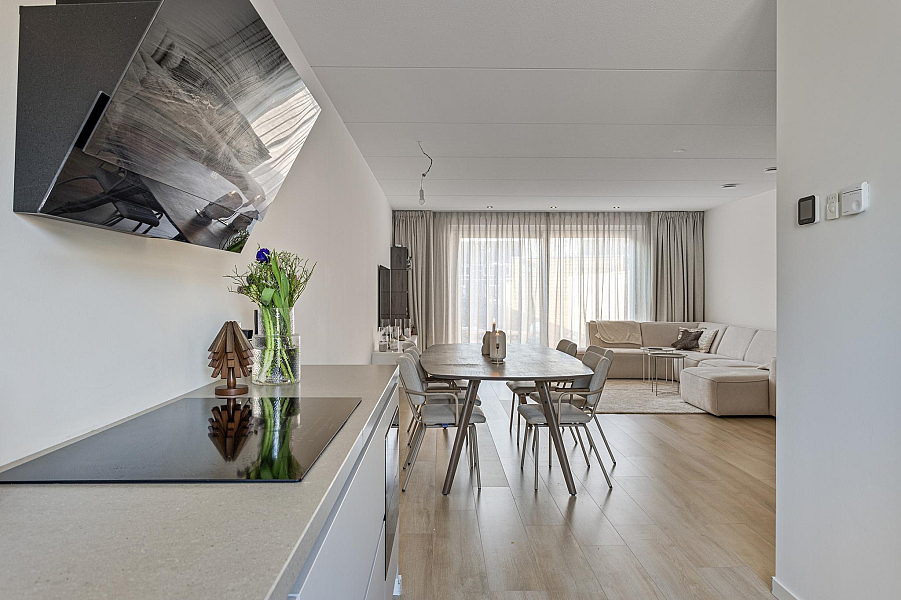 • Luxe keuken: De woning is voorzien van een luxe keuken, uitgerust met alle moderne gemakken en hoogwaardige inbouwapparatuur. Onder andere een koel- vriescombinatie, vaatwasser, inductiekookplaat en wijnklimaatkast maken deze keuken compleet.