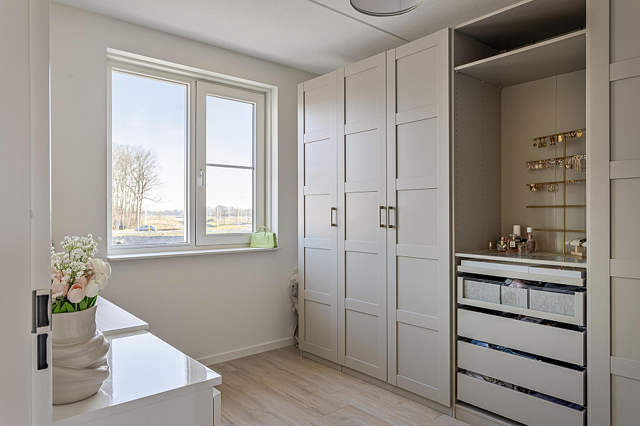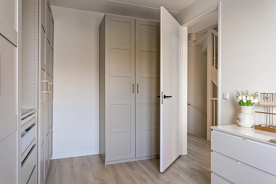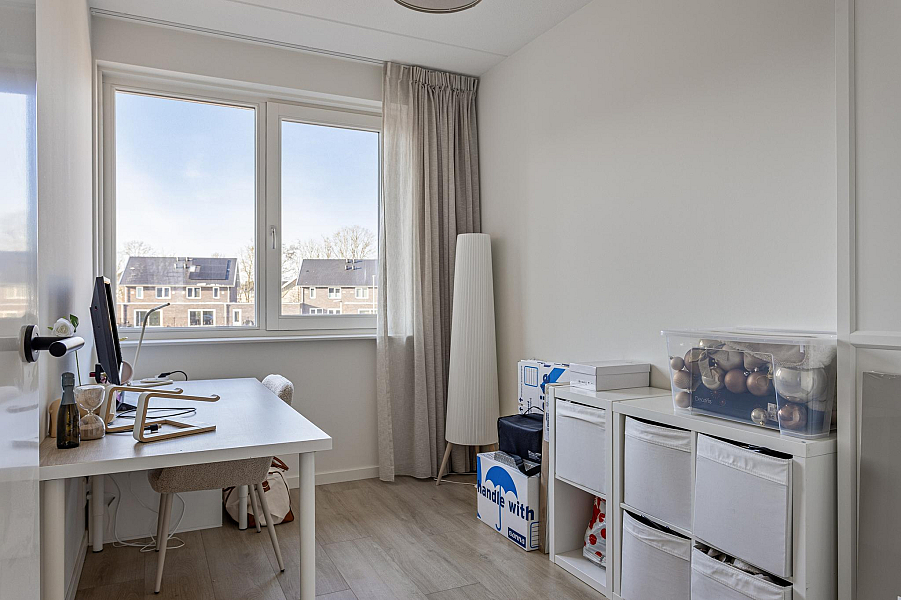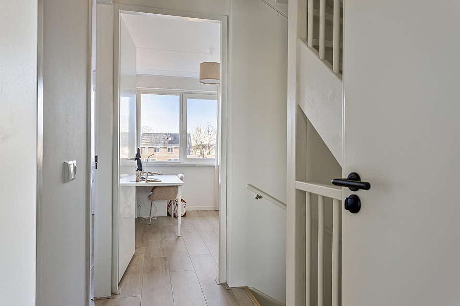 • Slaapkamers: Op de eerste verdieping bevinden zich 3 royale slaapkamers, waarvan er gemakkelijk een in te richten is als inloopkast of thuiswerkplek. Alle kamers beschikken over een eigen thermostaat.