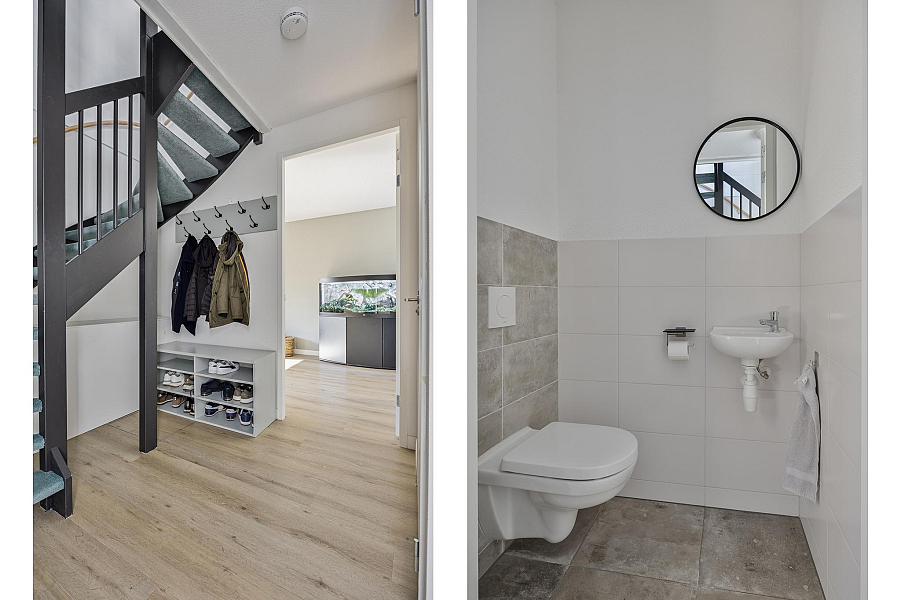 • Eerste verdieping: Drie ruime slaapkamers en een moderne badkamer met ligbad, inloopdouche, dubbele wastafel, een tweede toilet en vloerverwarming.