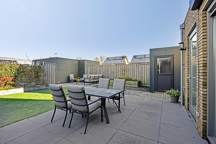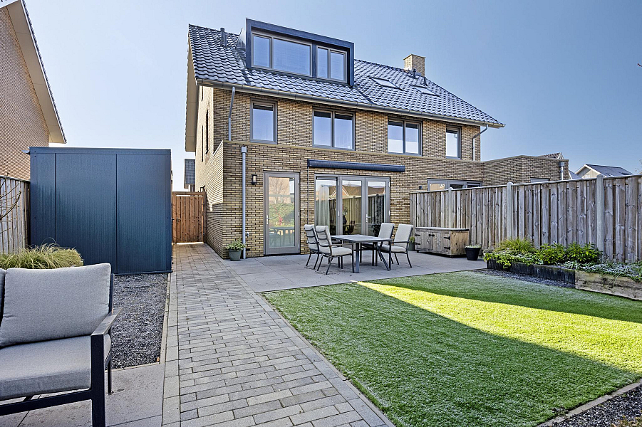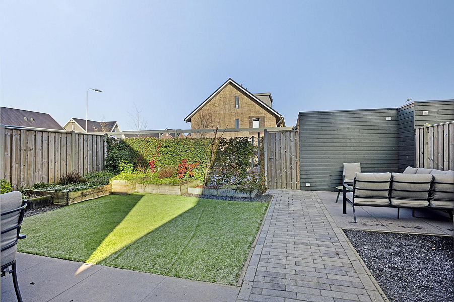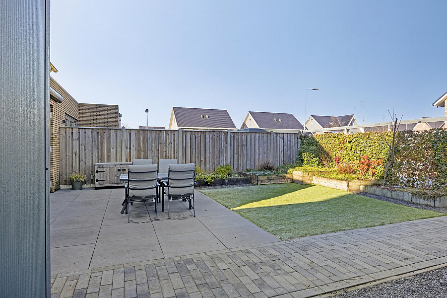 De diepe en brede achtertuin is gelegen op het noordwesten! Door deze ligging kun je in de middag, tot het eind van de dag, genieten van de zon. Daarnaast zijn er twee ruime bergingen aanwezig, ideaal voor extra opslag of hobbyruimte.