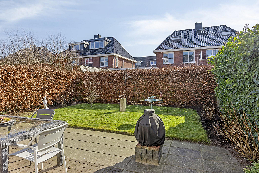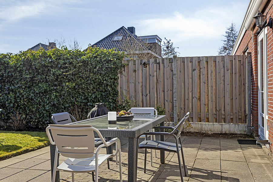 De achtertuin is ook via de garage/berging te bereiken; hier is het volop genieten van de zon!