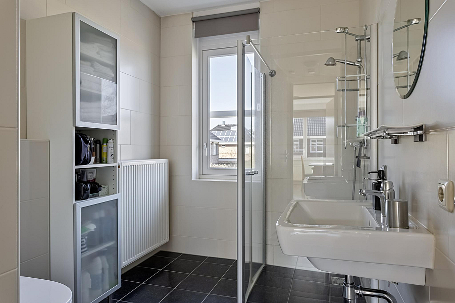 De begane grond is voorzien van een fraaie plavuizen vloer met vloerverwarming.