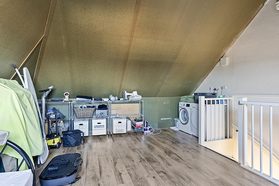 2E VERDIEPING: Hier vind je een ruime slaapzolder met veel bergruimte. Ook wasmachine en de cv-ketel (2023) staan hier opgesteld. Het is goed mogelijk hier een extra kamer/kamers te realiseren.