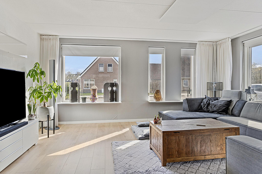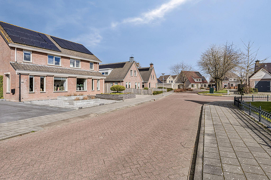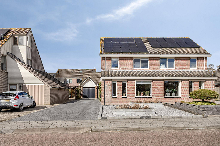 Ruim en speels ontworpen HELFT VAN DUBBEL WOONHUIS met vrijstaande GARAGE, BIJKEUKEN en vrije tuin op het noordwesten. De oprit is lang en breed en biedt plaats voor wel 4 auto's. De woning is gelegen op een mooie locatie nabij de kern van het dorp met alle voorzieningen. De perceeloppervlakte bedraagt 306 m2 eigen grond. Bouwjaar 1994.
