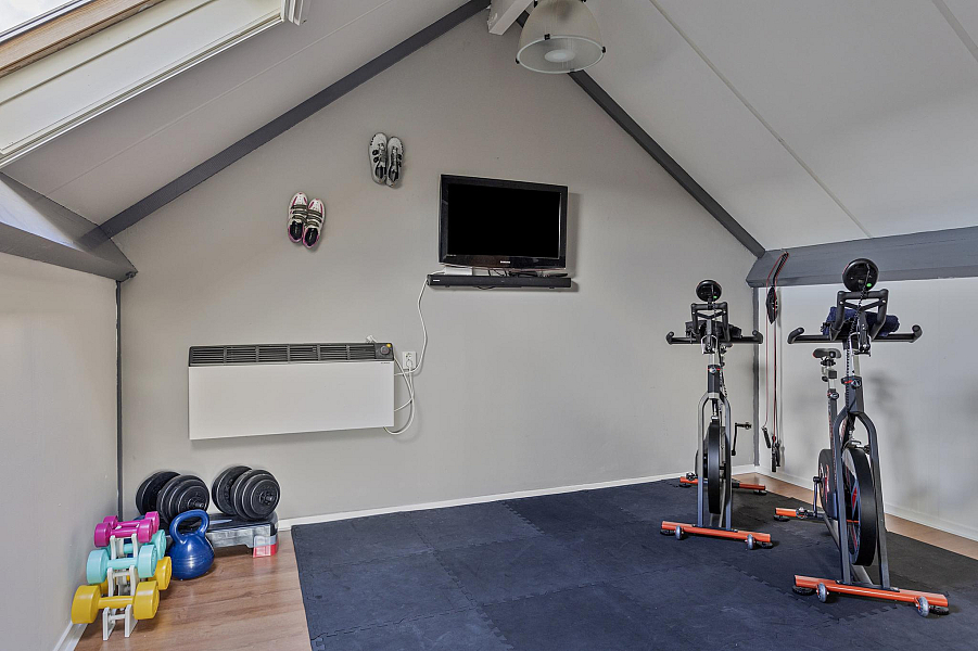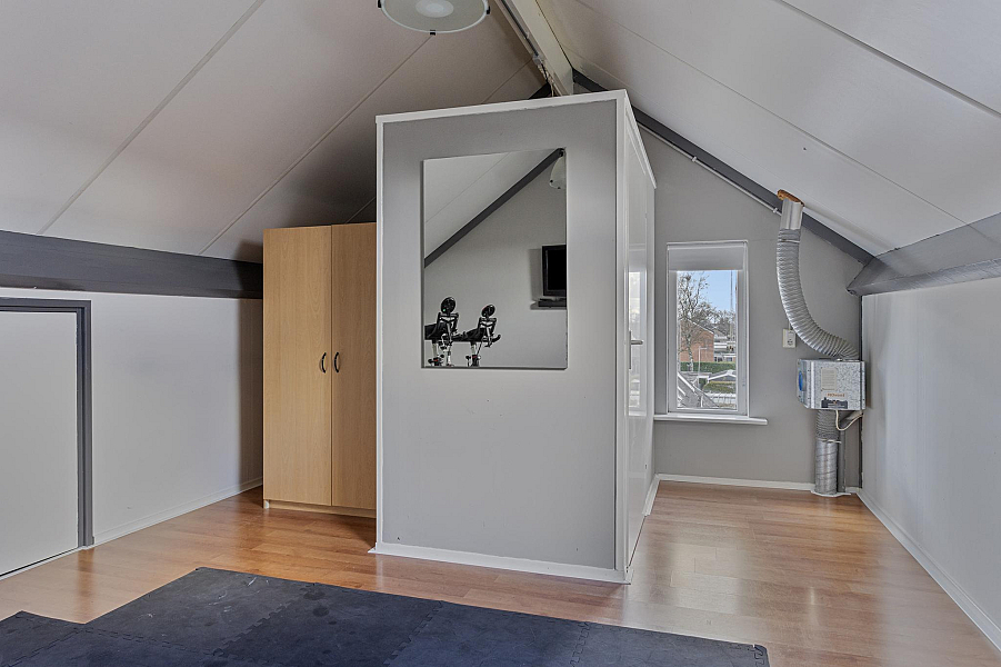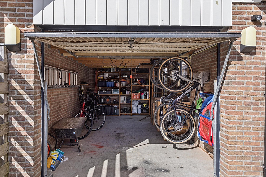 De brede garage (3.80 x 6.60 m.) is voorzien van een flinke bergzolder.