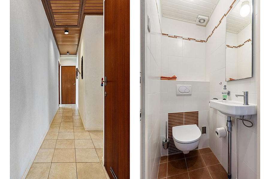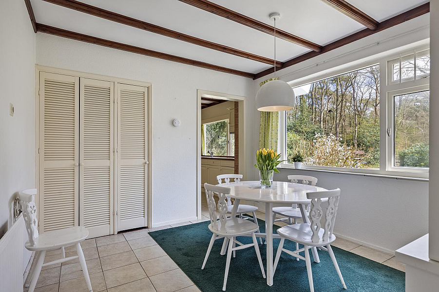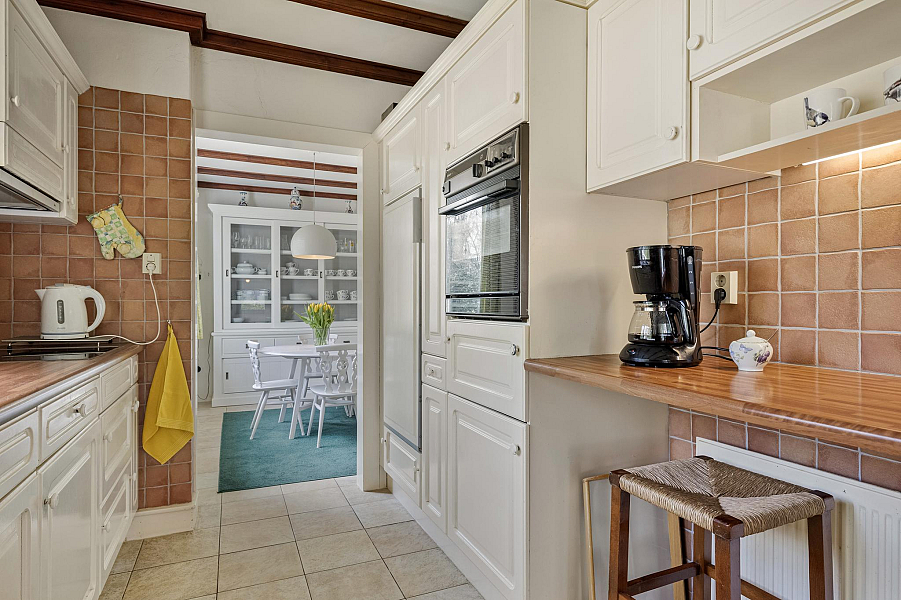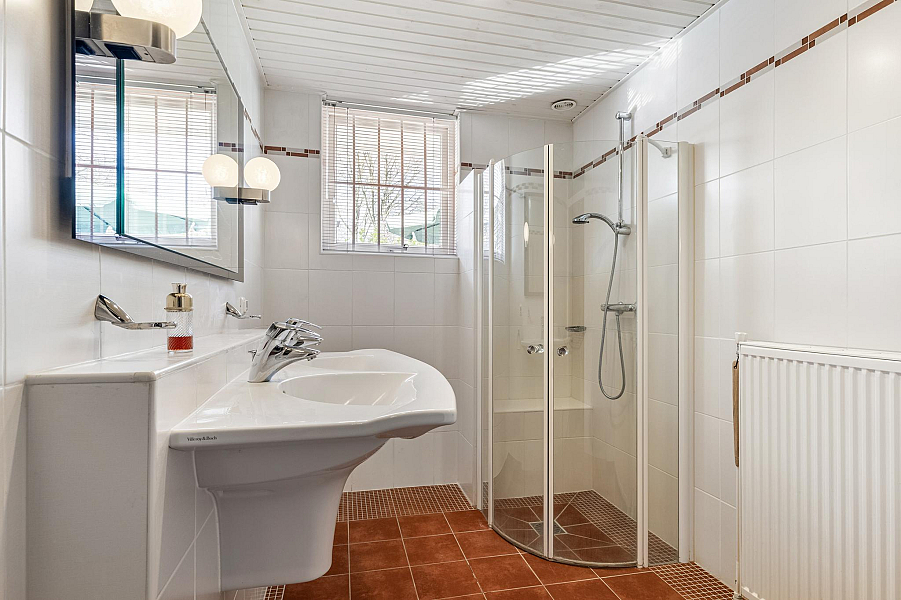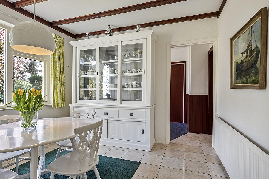 Indeling: De hal is de centrale plek in huis waar je binnenstapt, met een moderne garderobe en een ruim, eigentijds toilet. De lichte en sfeervolle woonkamer is uitgerust met een gezellige open haard en een tuindeur die het buitenleven uitnodigt. De woonkeuken is voorzien van de benodigde inbouwapparatuur en een ruime eethoek. Er is een gastvrije logeerkamer met een eigen badkamer, inclusief ligbad, toilet en wastafel. De twee aanvullende slaapkamers zijn rustig gelegen aan de achterzijde van de woning, naast een moderne badkamer met een dubbele wastafel en inloopdouche. Een handige bijkeuken biedt ruimte aan je witgoed en de vlizotrap geeft toegang tot extra bergruimte op de verdieping.