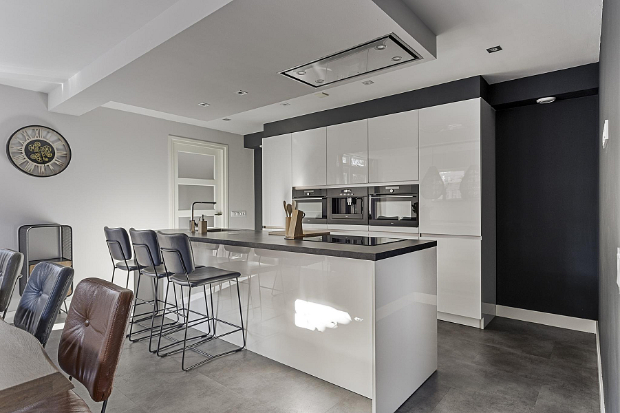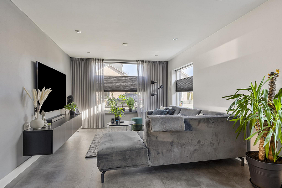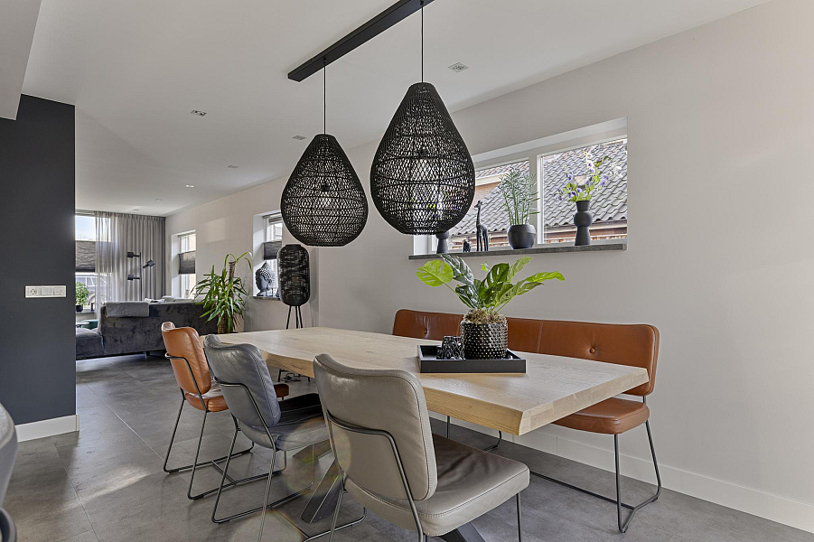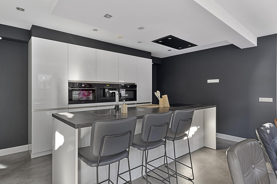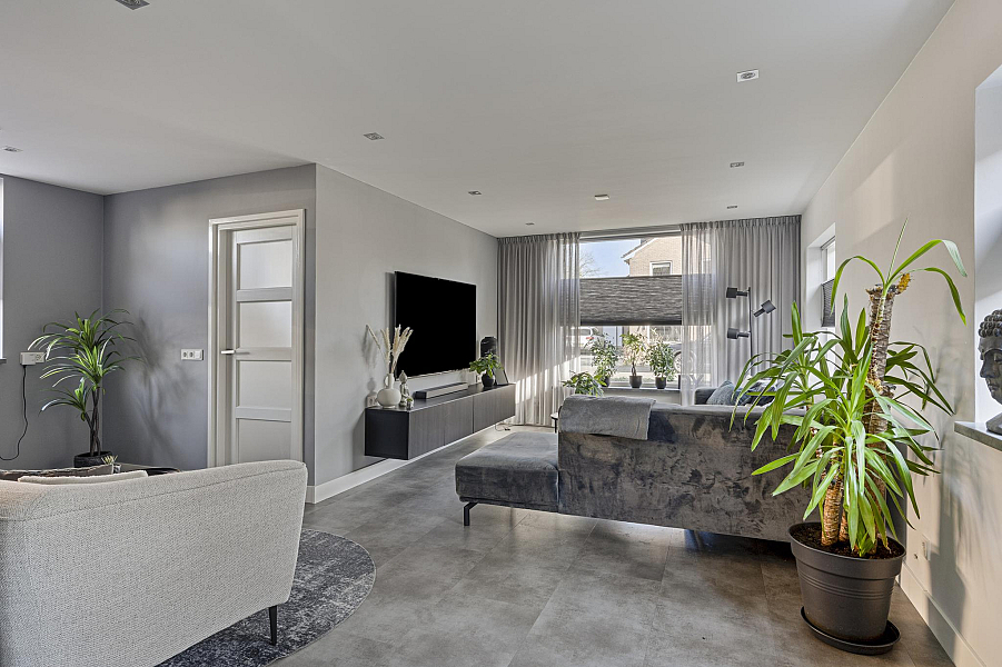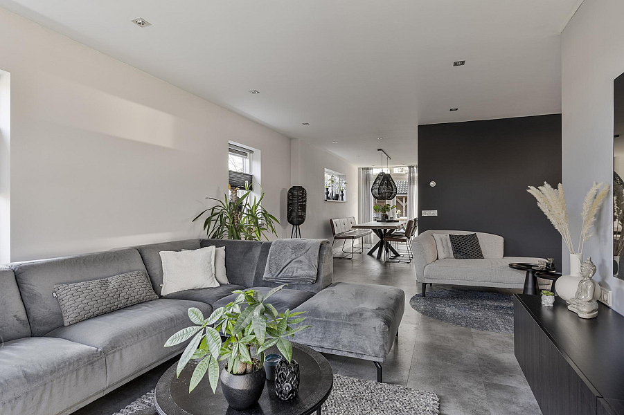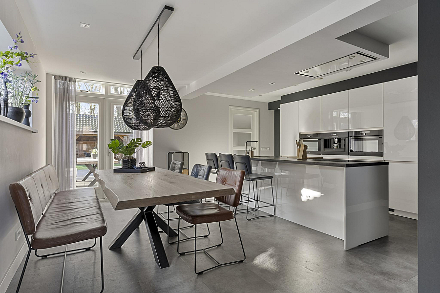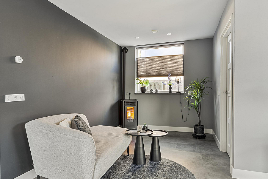 Begane grond: entree met meterkast en toegang tot een mooie droge kelder, trapopgang naar de verdieping. Aan de straatzijde van de woning is de prachtige royale living gelegen, deze ruimte is voorzien van een pelletkachel (ter overname), moderne plavuizen met vloerverwarming en grote raampartijen waardoor het heerlijk licht is. Aan de tuinzijde is de open keuken met tuindeuren gesitueerd, welke is voorzien van een mooi kookeiland en alle moderne kwaliteitsapparatuur (dubbele ovens/magnetron, koelkast/vriezer, vaatwasser, koffiezetapparaat, inductiekookplaat en afzuiging).